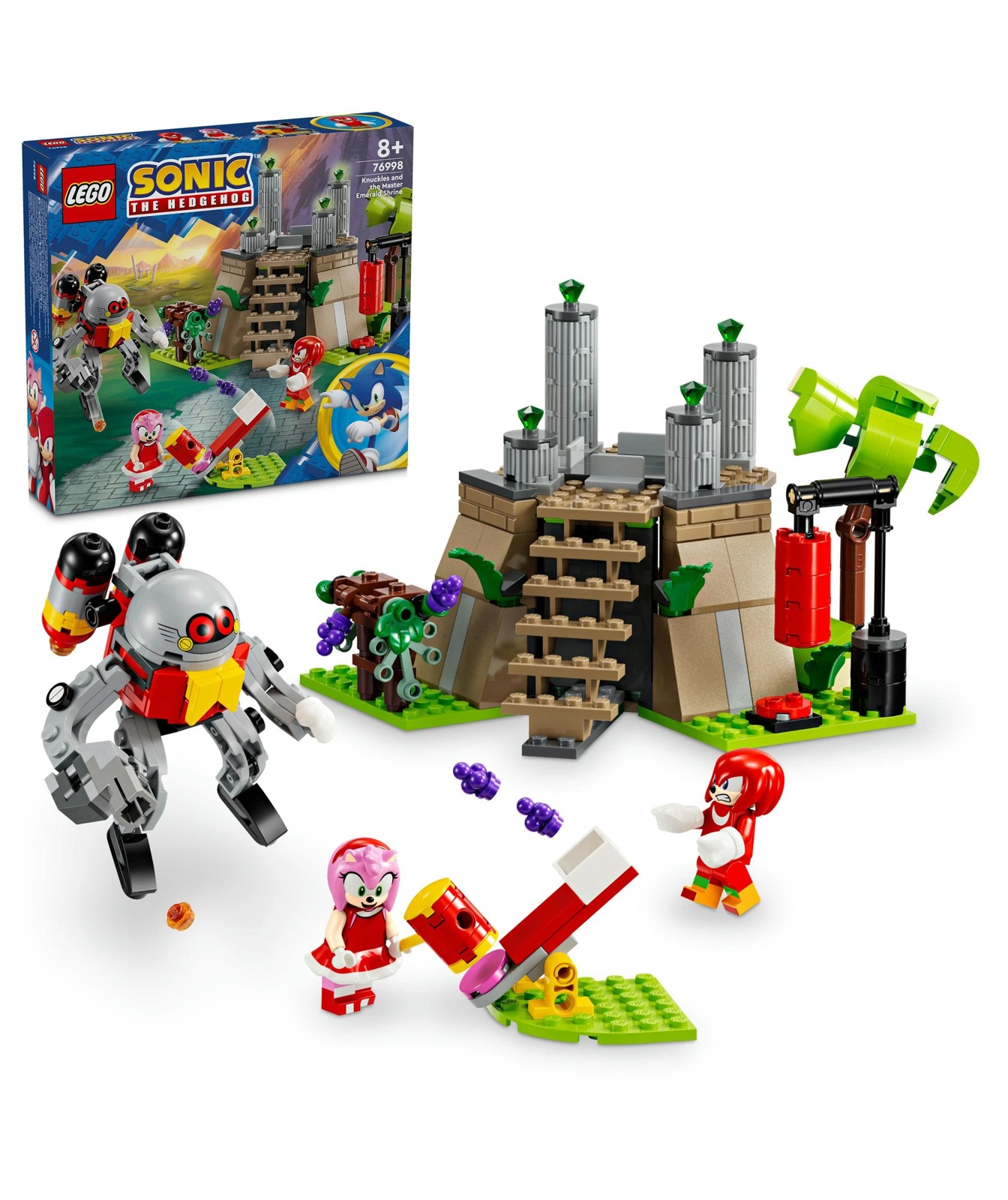 This cool Sonic playset can be an imaginative toy that lets fans create stories with Knuckles and Amy: from working out and harvesting grapes, to defending the shrine and Chaos Emeralds, to relaxing with snacks after defeating the Eggrobo and rescuing the Picky.