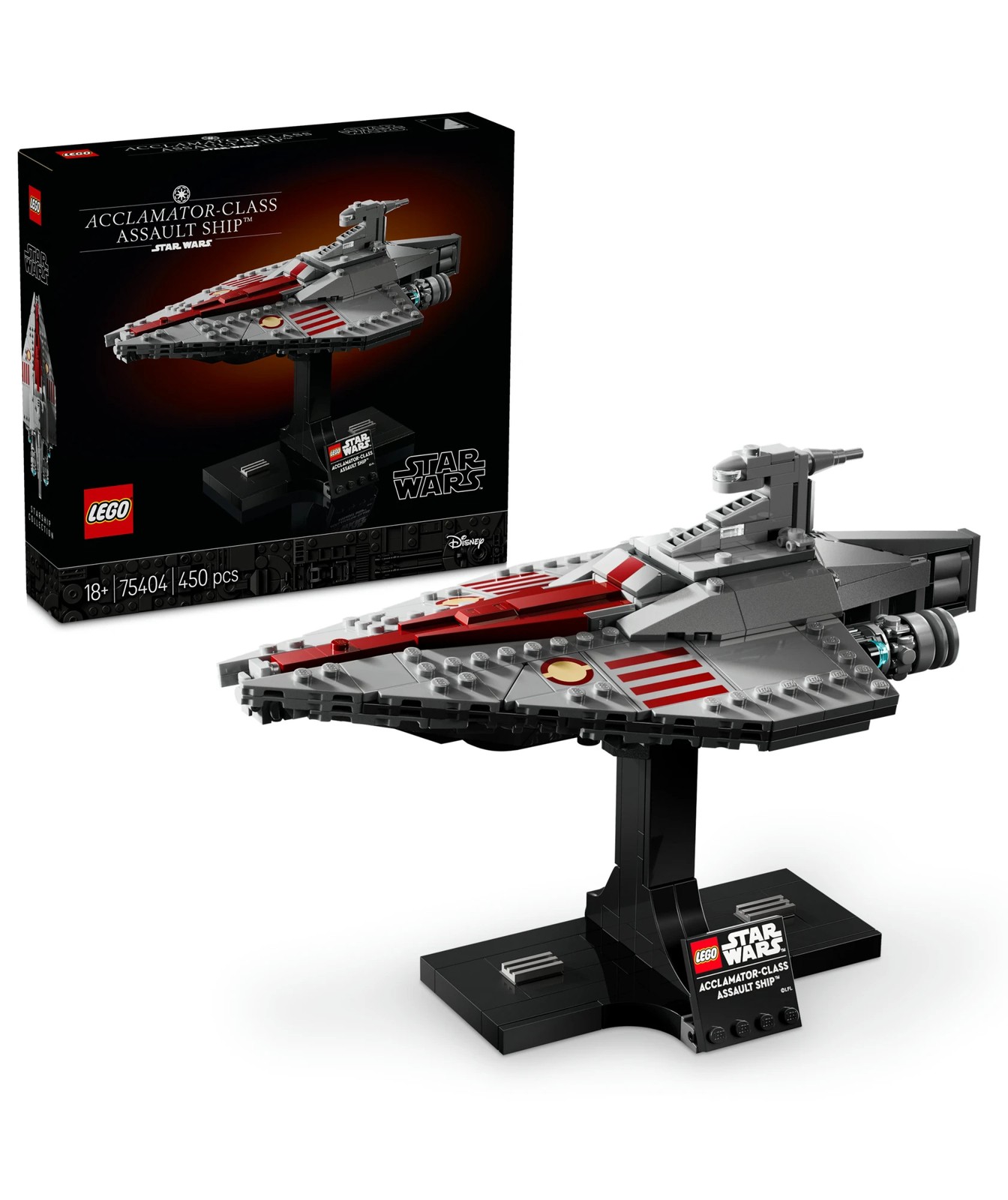 Be transported to the drama of the Battle of Geonosis as you build the first-ever LEGO® Star Wars™ construction model of an Acclamator-Class Assault Ship (75404). This Star Wars collectible build-and-display starship model captures many authentic details of the iconic vehicle seen in Star Wars: Attack of the Clones™. Enjoy quality time immersing yourself in the complex, rewarding build, and display your creation on the stand with a nameplate.