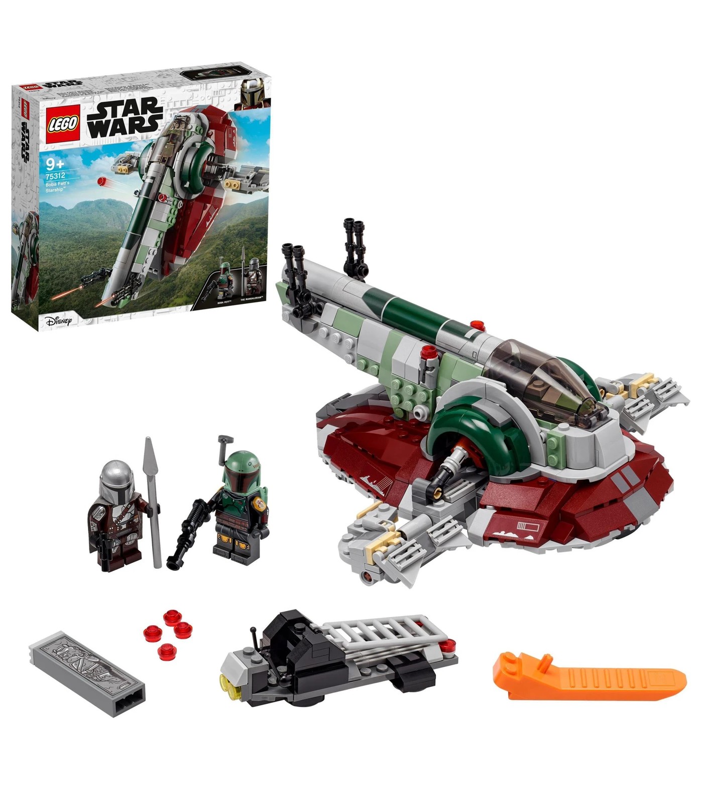 It features a handle for easy flying, an opening LEGO minifigure cockpit, rotating wings, 2 stud shooters and 2 rotating dual blaster cannons (non-shooting). This premium-quality set also includes Boba Fett and The Mandalorian LEGO minifigures with weapons, plus a Carbonite brick that fits in a compartment of the starship. Play and display There is also a transporter vehicle to move the starship and use as a stand so kids can display this awesome building toy in a vertical flying position. The set comes with clear instructions so even LEGO newcomers can build confidently. Galaxy of joy The LEGO Group has been creating brick-built versions of Star Wars™ starfighters, vehicles, locations and characters since 1999. The LEGO Star Wars theme has become hugely successful with construction sets that make super gifts for fans of all ages.