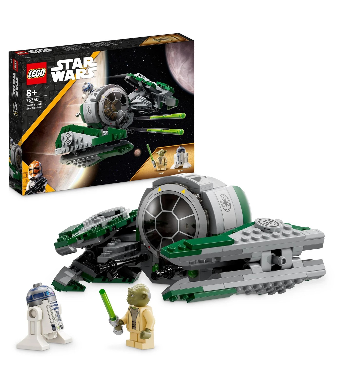 Kids can explore a galaxy far, far away with 2 popular Star Wars™ characters and this detailed LEGO® brick-built model of Yoda’s Jedi Starfighter (75360).