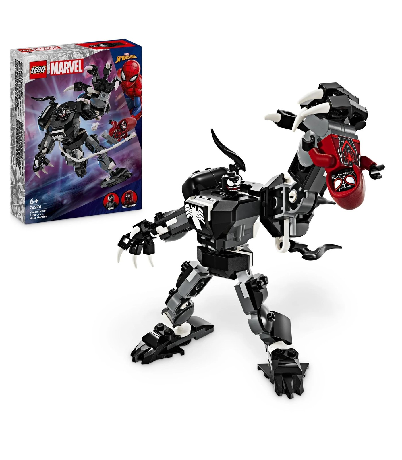 Embark on epic Super Hero adventures with the LEGO Marvel Venom Mech Armour vs. Miles Morales (76276) set.