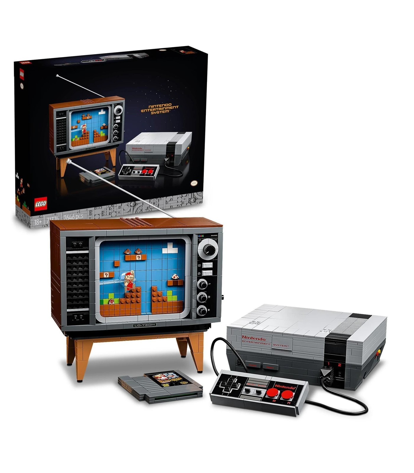 Authentic and interactive The brick-built NES is packed with realistic details, including an opening slot for the Game Pak with a locking function and a controller with a connecting cable and plug. The console comes with a buildable retro TV, featuring a flat 8-bit Mario figure on the scrolling screen, plus an action brick to scan with LEGO® Mario™ (figure not included; find in the LEGO® Super Mario™ Starter Course set – 71360) so he reacts to the on-screen enemies, obstacles and power-ups just like in the Super Mario Bros. game. Creative fun This unique set is part of an inspiring collection of LEGO building sets for adults that make fabulous gifts for yourself and hobbyist friends who enjoy DIY challenges and proudly displaying their creations.