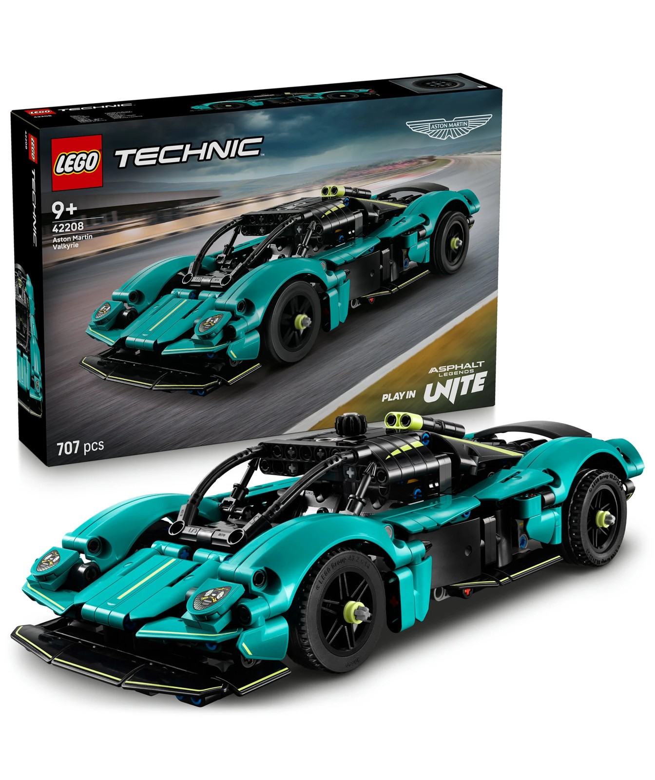 Give kids a thrilling project with this LEGO® Technic™ Aston Martin Valkyrie (42208) car model kit for boys and girls aged 9 and up. Inspired by the real-world Aston Martin, this model version will delight sports car fans with its striking aerodynamic design and eye-catching colour scheme. Discover a wealth of features like the steering, which is controlled by a knob on top of the car, and the doors, which open gullwing style, just like those on the real car. Open the hood and lift the engine cover to reveal the V12 engine. See the pistons move as the driver’s side wheel turns – and check out the differential. LEGO Technic sets (sold separately) feature realistic movement to introduce young LEGO builders to the universe of engineering. This set makes a great gift for kids who love vehicle toys. Give kids an easy and intuitive building adventure with the LEGO Builder app, where they can zoom in and rotate models in 3D, save sets and track their progress. Set contains 707 pieces.