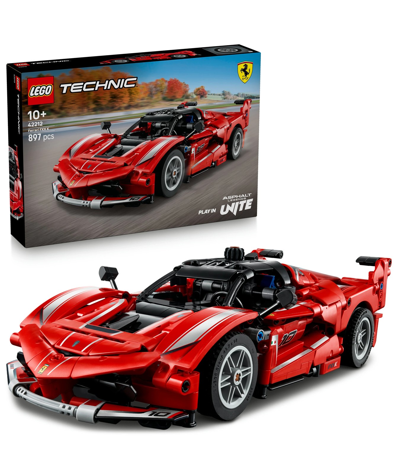 Give young car lovers an action-packed building challenge with this LEGO® Technic Ferrari FXX K model car kit for boys and girls aged 10 and over. Ferrari fans can enjoy assembling all the authentic features inspired by the real-world car before trying out its exciting functions. Just like the original, this model version features opening butterfly doors and an opening bonnet. Test out the realistic differential and see the pistons move, then open the engine cover to view the V12 engine. After exploring all the functions, kids can display their Ferrari toy car and admire its iconic red colour scheme. This set makes a fun gift for boys and girls or anyone with a passion for Ferrari and luxury cars. LEGO Technic cars feature realistic movement to introduce young LEGO builders to the universe of engineering. This set makes a great gift for kids who love LEGO vehicle toys. Set contains 897 pieces.
