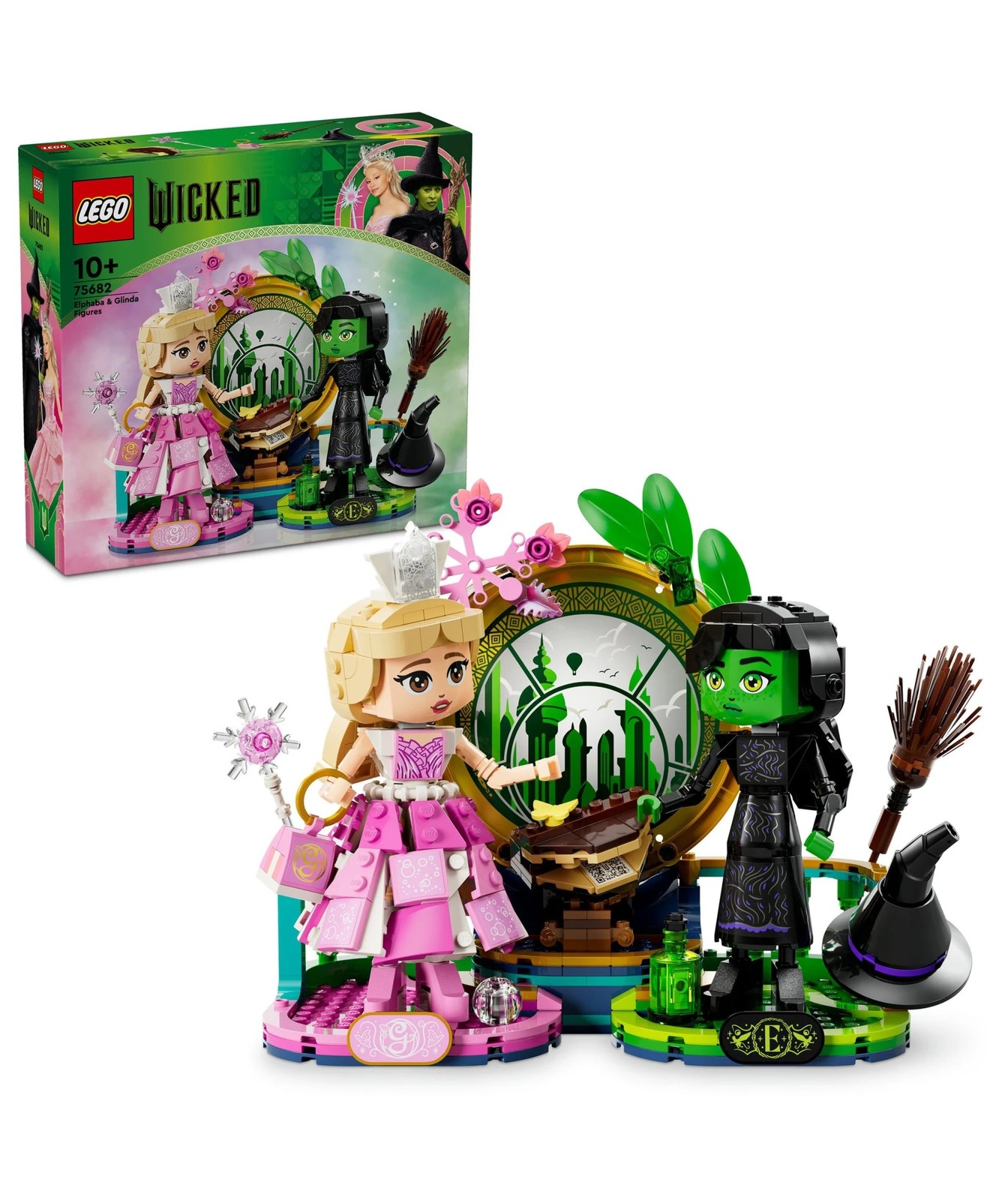 Take Wicked fans aged 10 years old and over on a magical ride to a spellbinding film moment. The LEGO® Wicked Elphaba & Glinda Figures (75682) fantasy toy reimagines the scene where Elphaba finds the courage to defy gravity.