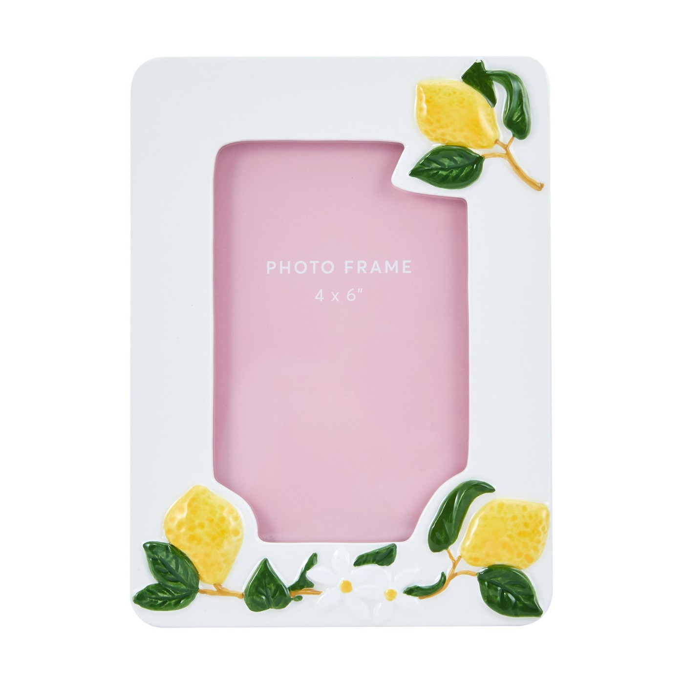 Infuse your space with sunshine by displaying your treasured photos in the Lemons Frame. Each glance at its vibrant lemon detailing will lift your mood, turning ordinary snapshots into delightful keepsakes. The clever back stand offers reliable support, letting you showcase your memories effortlessly on shelves, desks or side tables. With its crisp rectangular shape and perfect 4 x 6 inch size, this frame is an eye-catching addition to any room. Whether you're looking to add a playful twist to your decor or searching for a thoughtful gift, the Lemons Frame promises to spread warmth and joy wherever it stands. Capture happiness at home—bring this cheerful frame into your life today.