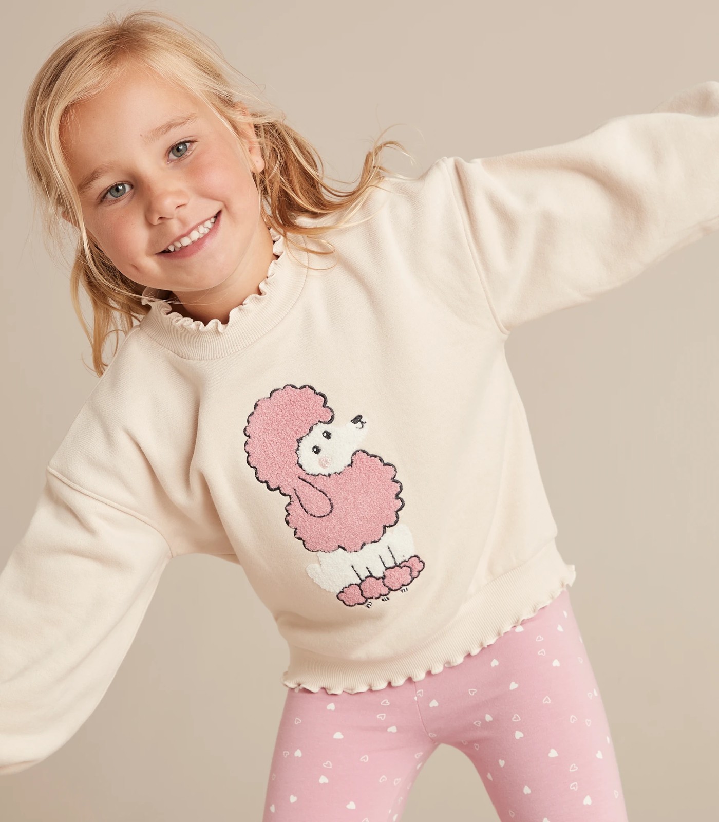 Crafted from soft cotton poly blend for all day comfort and a great addition to her wardrobe comes the Lettuce Edge Bouclé Jumper, featuring a lettuce trim neck and hemline, long sleeves and a cute bouclé Poodle print to chest.