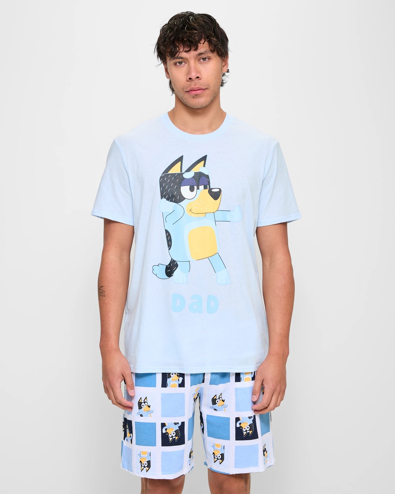 Discover the ultimate blend between style and comfort with our Licenced Bluey Dad Pyjama Set. Made from high-quality cotton, these pyjamas are designed to be light and breathable, perfect for a good night's sleep or lounging about. The vibrant Bluey and Dad character prints add a playful touch, bringing joy to your nightwear. Great for Fathers Day or for any lover of Bluey.
