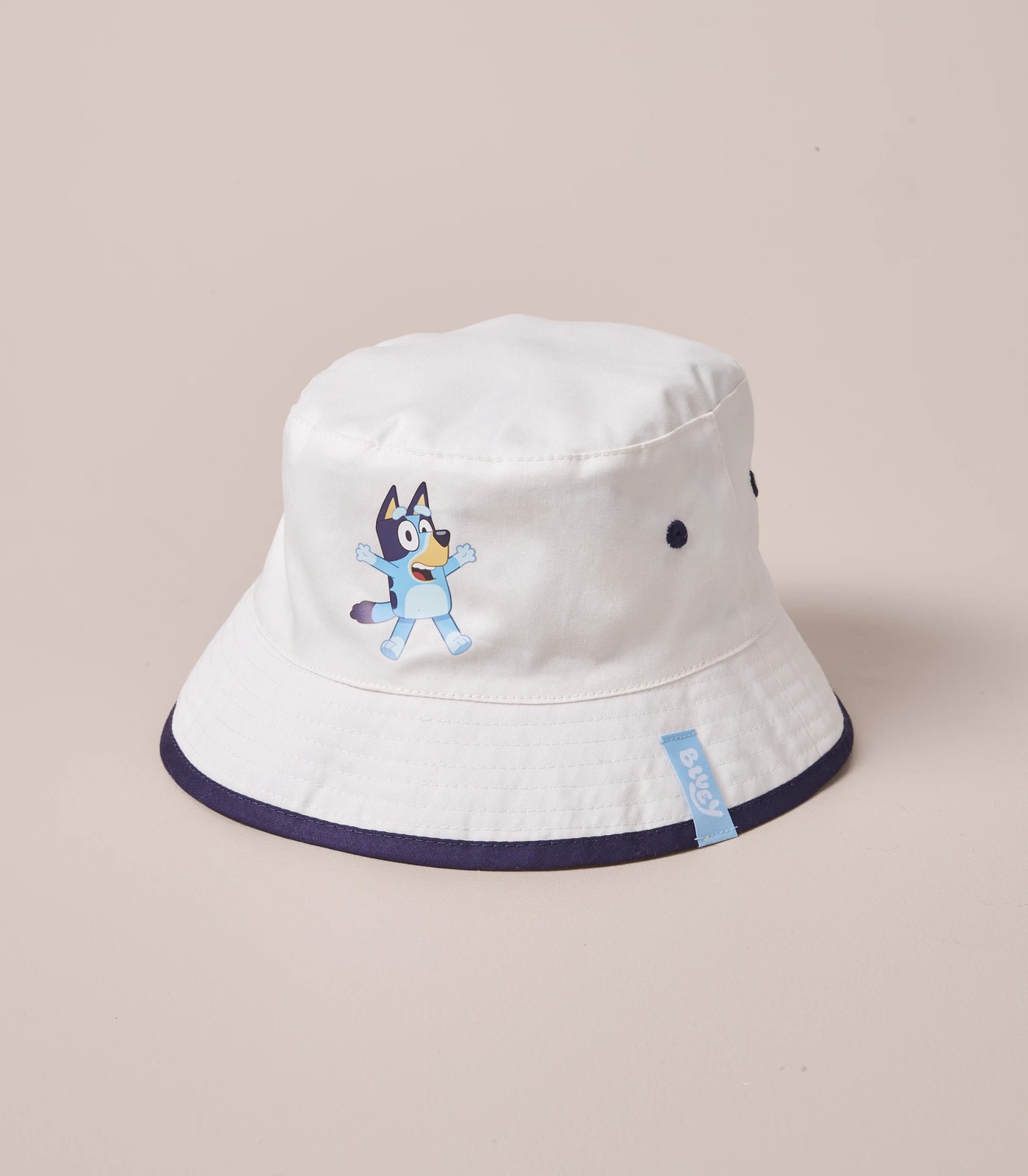 The licensed Bluey bucket hat is perfect in warm weather. It features a reversible design, with a Bluey printed placement print on one side and an all over Bluey print on reverse.