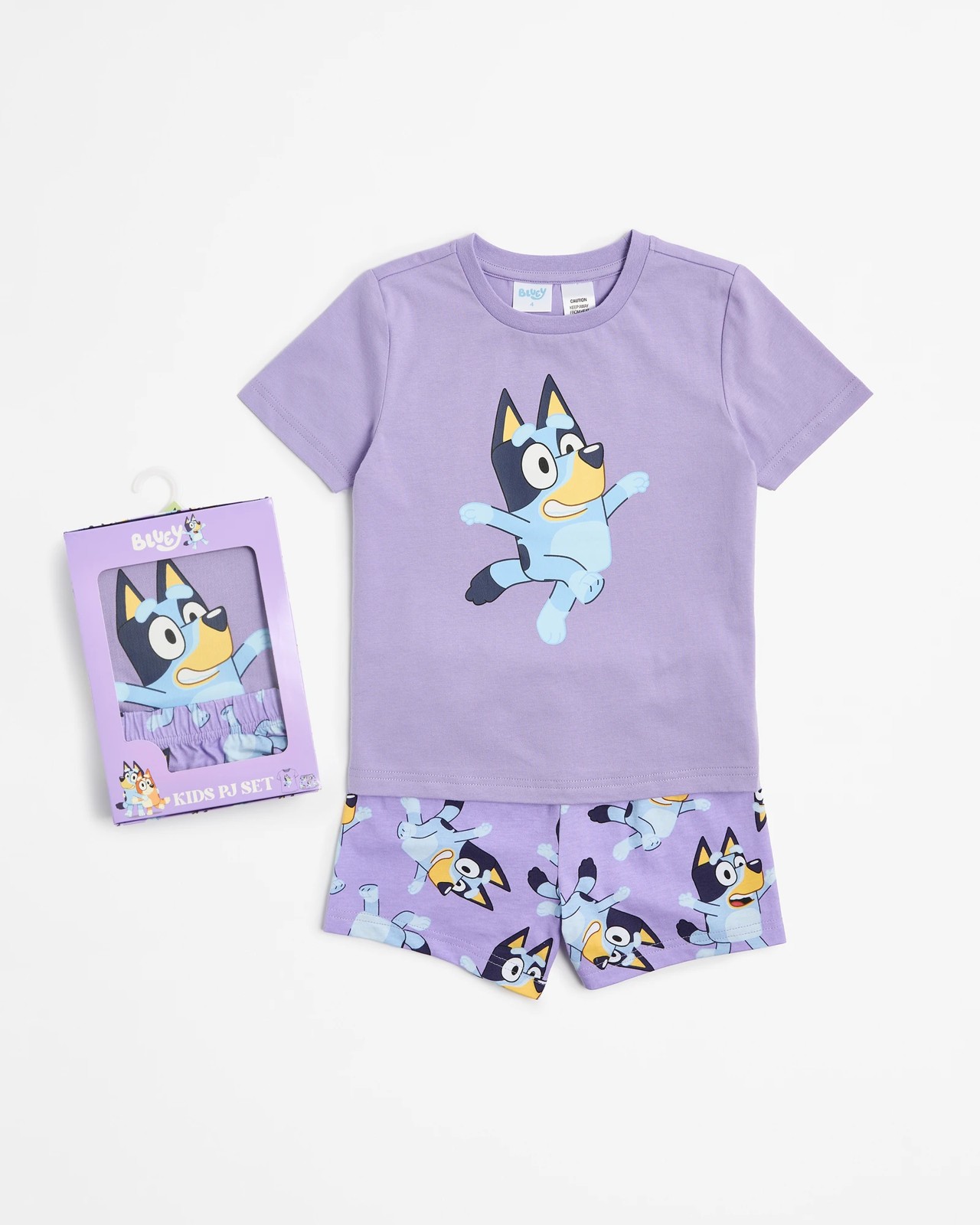 Top: crew neckline, short sleeves, bold Bluey front print, straight hemline
