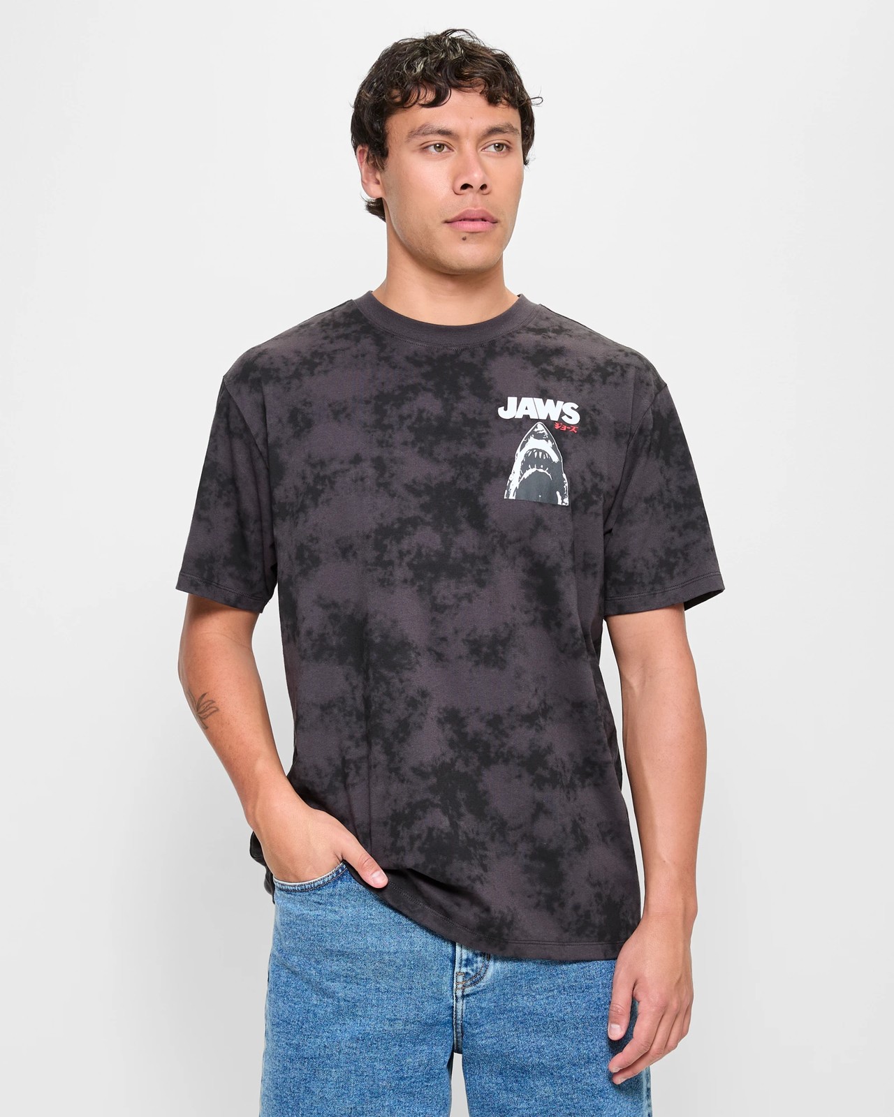 Step into a thrilling blast from the past with this Licenced Jaws T-Shirt. Made using a cosy cotton and polyester blend, it's perfect for all-day wear. The timeless black colour and stylish washed effect give it a unique edge. Featuring striking Jaws graphics on both the chest and back, this tee pays homage to the classic film. Enjoy its regular fit, ribbed crew neck, and short sleeves for a look that's both trendy and comfortable. Don't wait—add this iconic piece to your collection today!