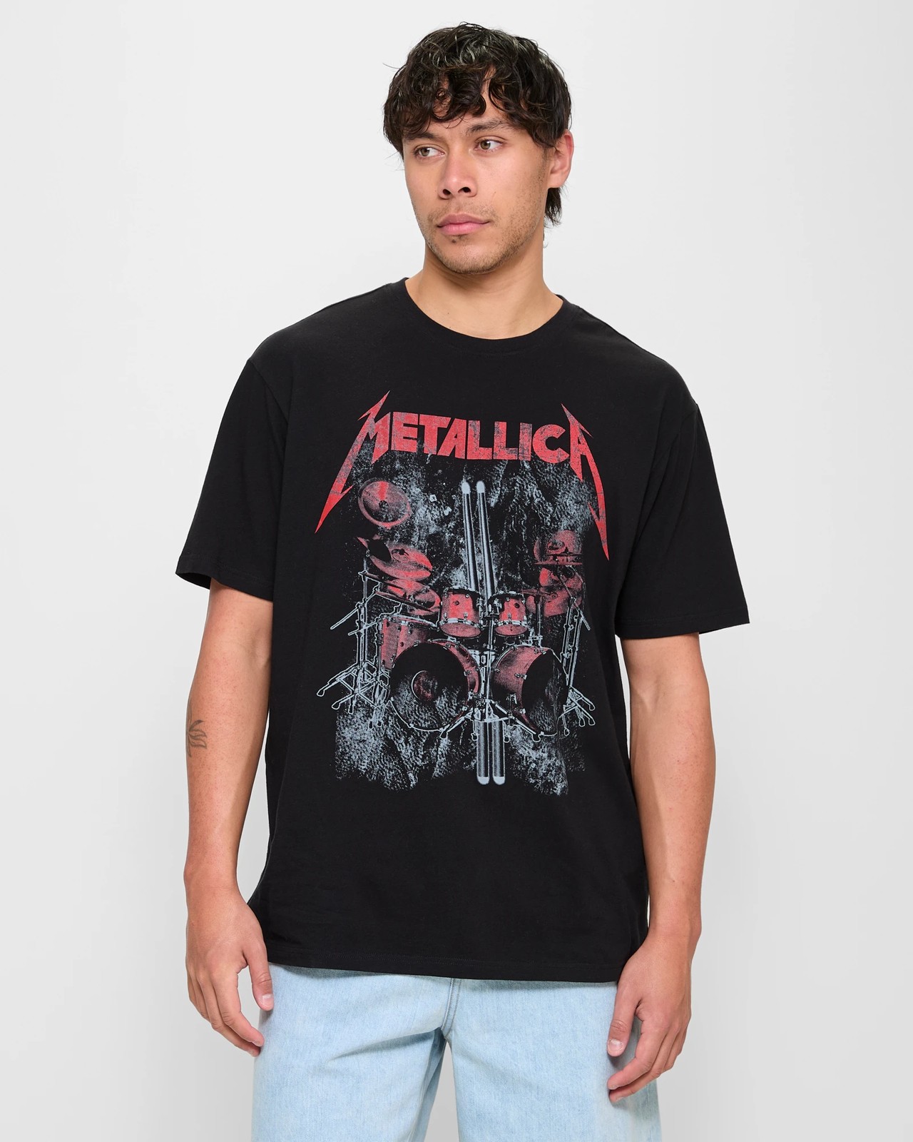Experience ultimate comfort and show off your love for Metallica with this licenced t-shirt. Made from soft, breathable cotton, it ensures you stay cool all day long. The striking Metallica design on the chest is bound to turn heads, whether you're at a concert or chilling with friends. Enjoy its comfortable regular fit and classic crew neckline. Short sleeves and a straight hem make it an easy choice for any casual occasion. Grab yours now and let your inner rock star shine!