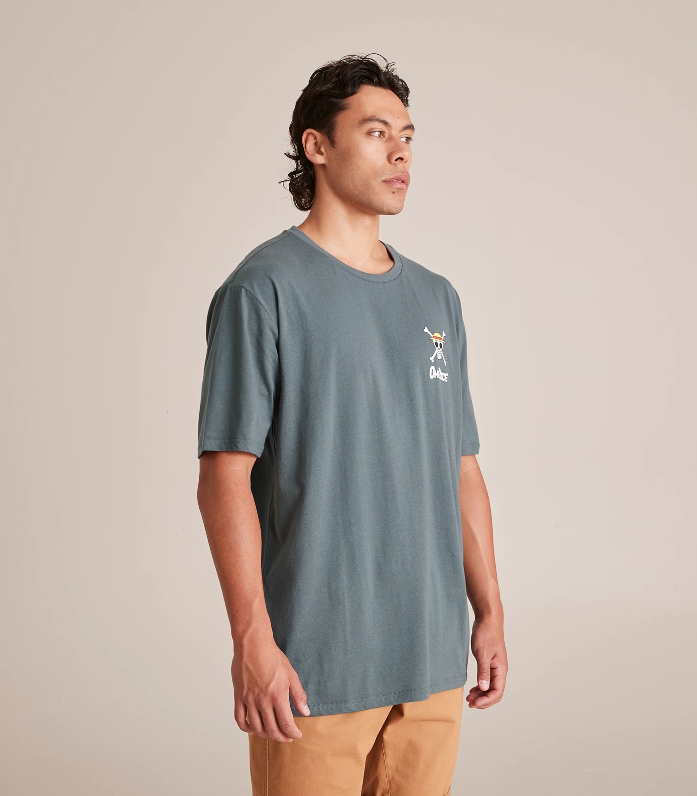 The dark slate One Piece licensed printed t-shirt features a bold chest print. It's made from soft, breathable cotton, has a comfy crew neckline and short sleeves and perfect for fans of the franchise.