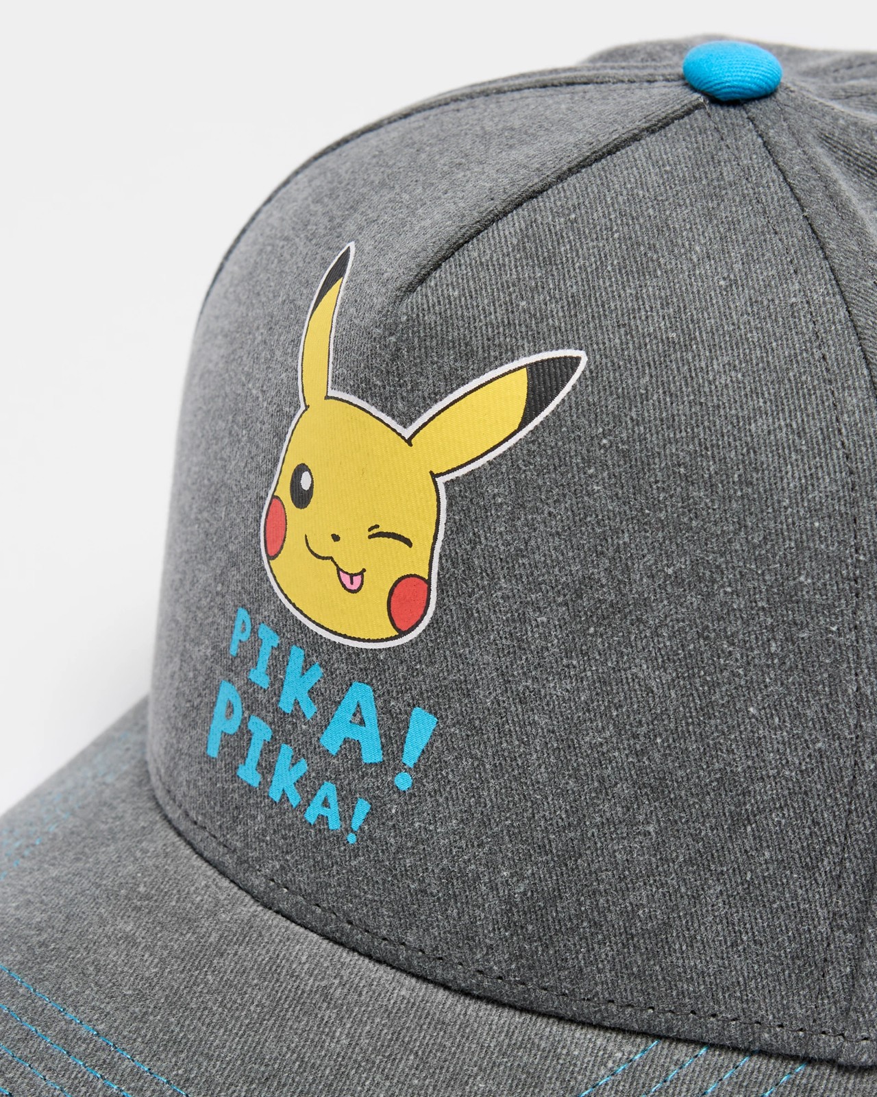 Pikachu image print on front of cap with wording PIKA PIKA!