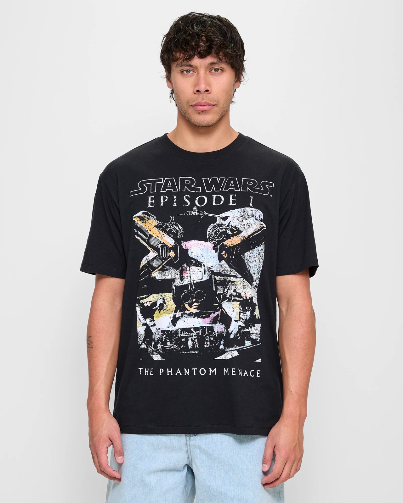 Embrace the Force with this Licenced Star Wars™ Episode One T-Shirt! Designed from soft, breathable cotton/polyester blend, this black tee offers ultimate comfort with a sleek, regular fit. Featuring a bold Star Wars™ design on the front and back, it's perfect for any fan looking to showcase their love for the iconic saga. The crew ribbed neckline and short sleeves make it a versatile addition to your wardrobe. Don't miss out on this must-have piece for any true Star Wars™ aficionado - get yours today!