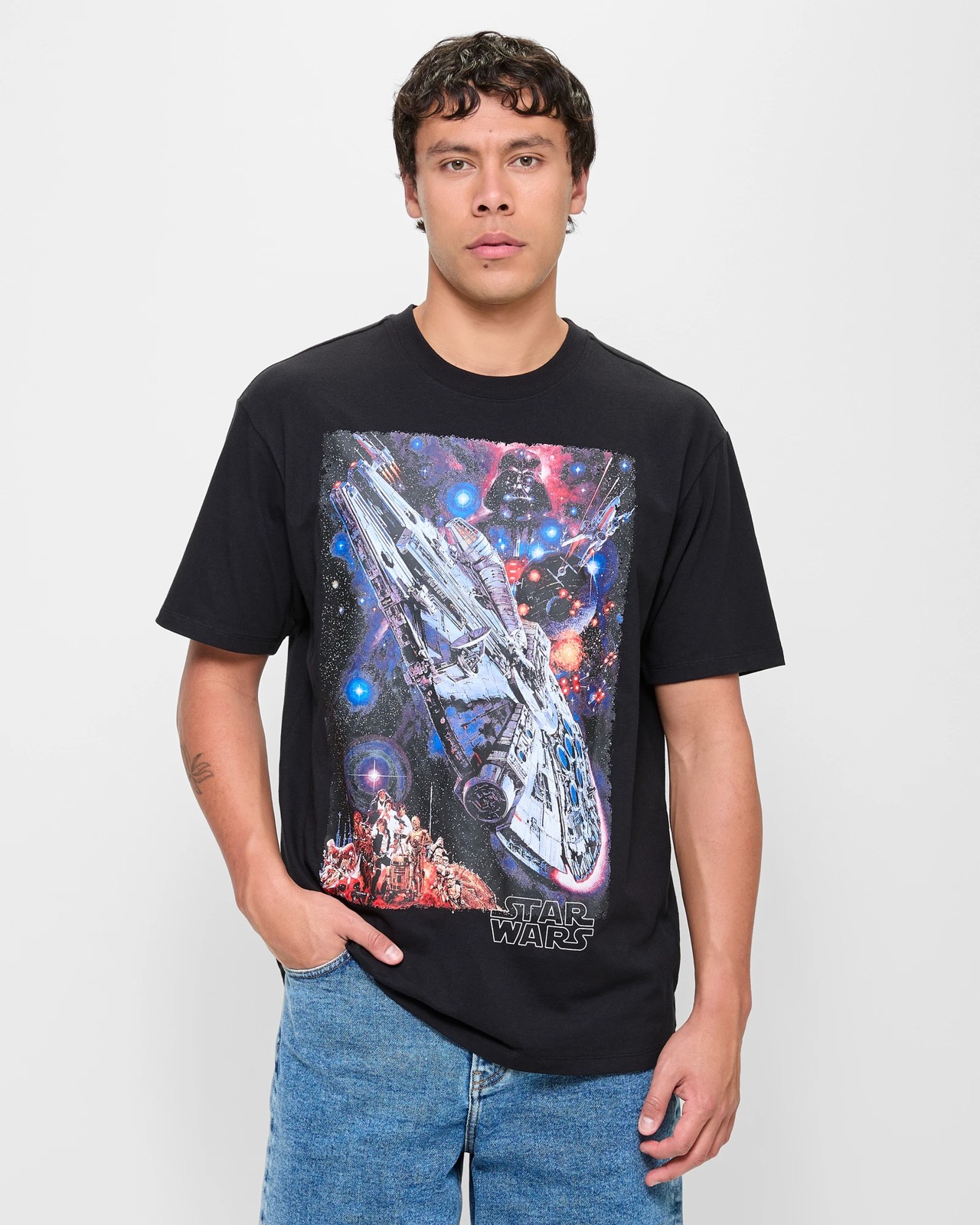 Bold Star Wars chest print with wording STAR WARS