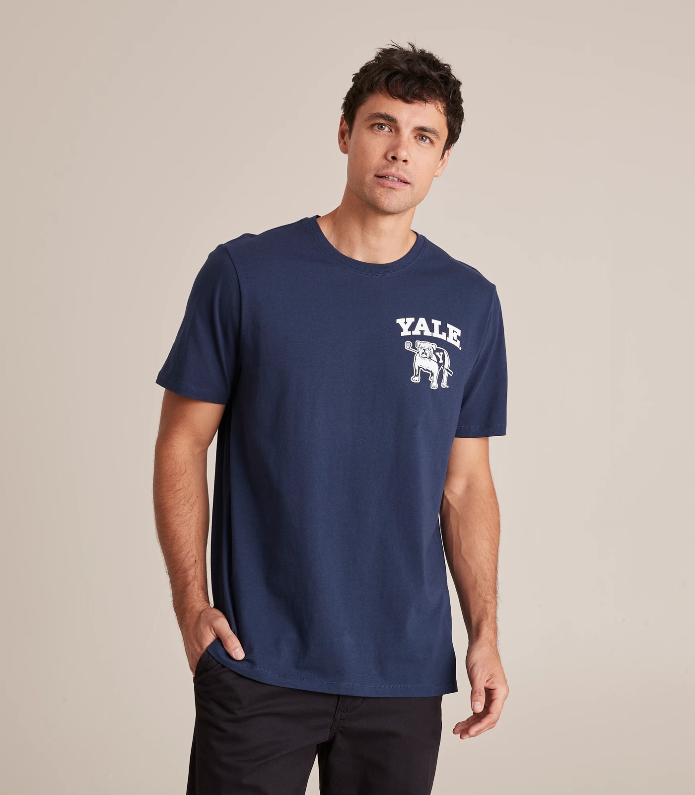 The navy blue Yale University licensed printed t-shirt features a bold chest print. It's made from soft, breathable cotton, has a comfy crew neckline and short sleeves and perfect for fans of the university.