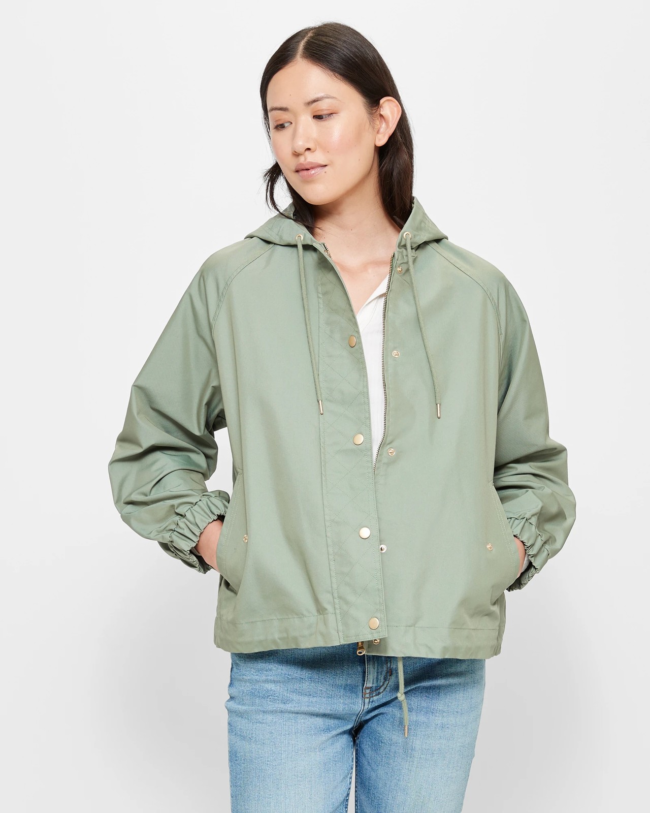 Introducing our lightweight hooded jacket for women. This jacket is made from a blend of high-quality cotton and polyester, ensuring comfort and breathability. It features a regular fit and a round hooded neckline with a drawstring for a custom fit. The long sleeves are thick and elastic cuffed for added warmth and style. The front flap has a quilted look and is secured with push stud closures, while the zip-through front provides convenience. The jacket also has side fold-over pockets with push stud closures, offering both functionality and a trendy look. The straight hemline and inner drawstring add a secure and stylish touch. Upgrade your wardrobe with this stylish and practical jacket today!