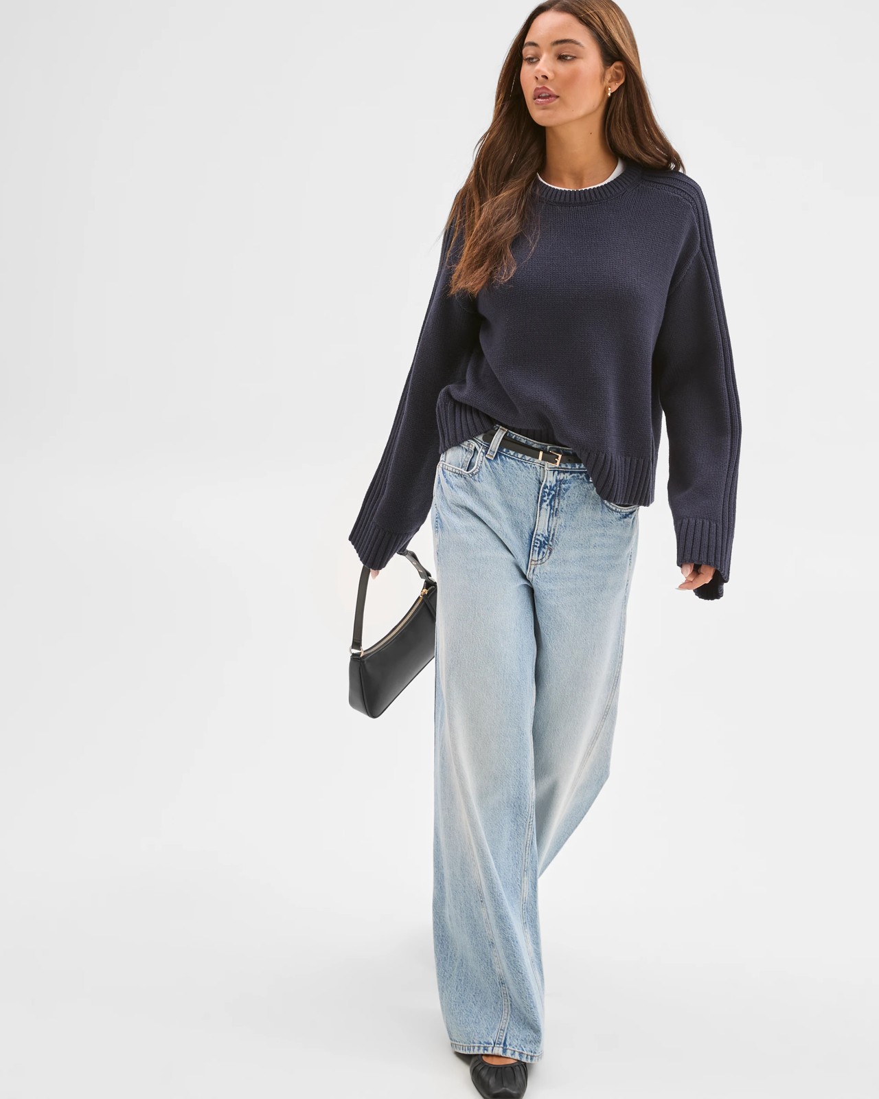 Lily Loves Australian Cotton Blend Crew Neck Knit Jumper - Navy