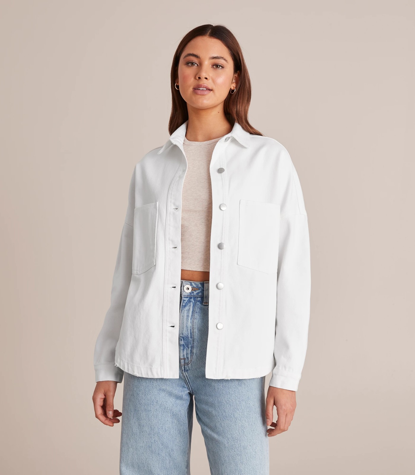 A great coverup for everyday wear, the Lily Loves denim shacket is the perfect mix of a shirt and a jacket. It features a round collared neckline with button through front for easy pull on, large exposed chest pockets and a curved hemline to flatter your figure.