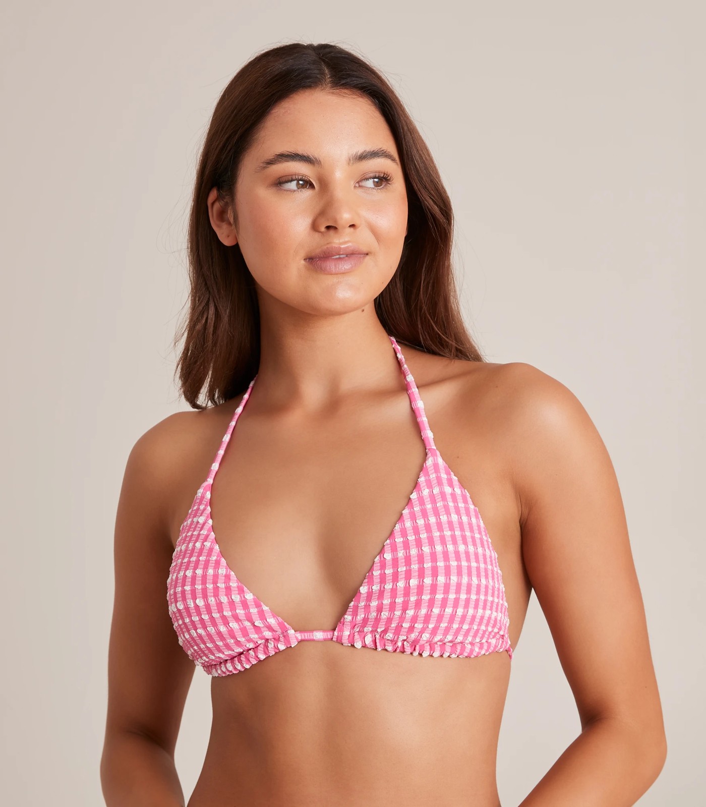 Stay sun smart but on trend this season in the Lily Loves gingham triangle bikini swim top. It has padded triangle cups, an all over gingham design, tie up neck and back and is fully lined. Pair it with the matching bikini bottoms to complete your look (sold separately).