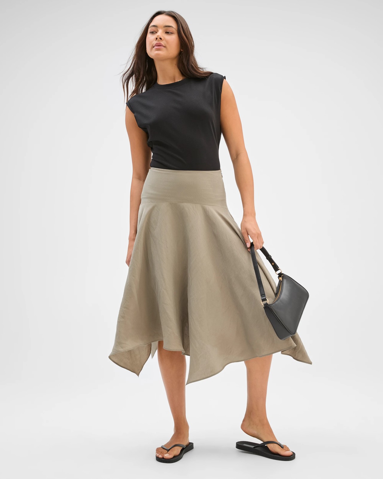 Step out with confidence in this Hanky Hem Midi Skirt from Lily Loves. The soft modal blend fabric feels wonderful against your skin, while the skirt's graceful midi length and unique asymmetrical hem add a playful twist to your look. With an easy elastic waistband and a neatly hidden side zip, it's simple to slip on for any occasion. From catching up with friends to heading out for a stroll, this skirt brings comfort and effortless style to your day. Upgrade your wardrobe with this delightful piece and let your individuality shine with every step!