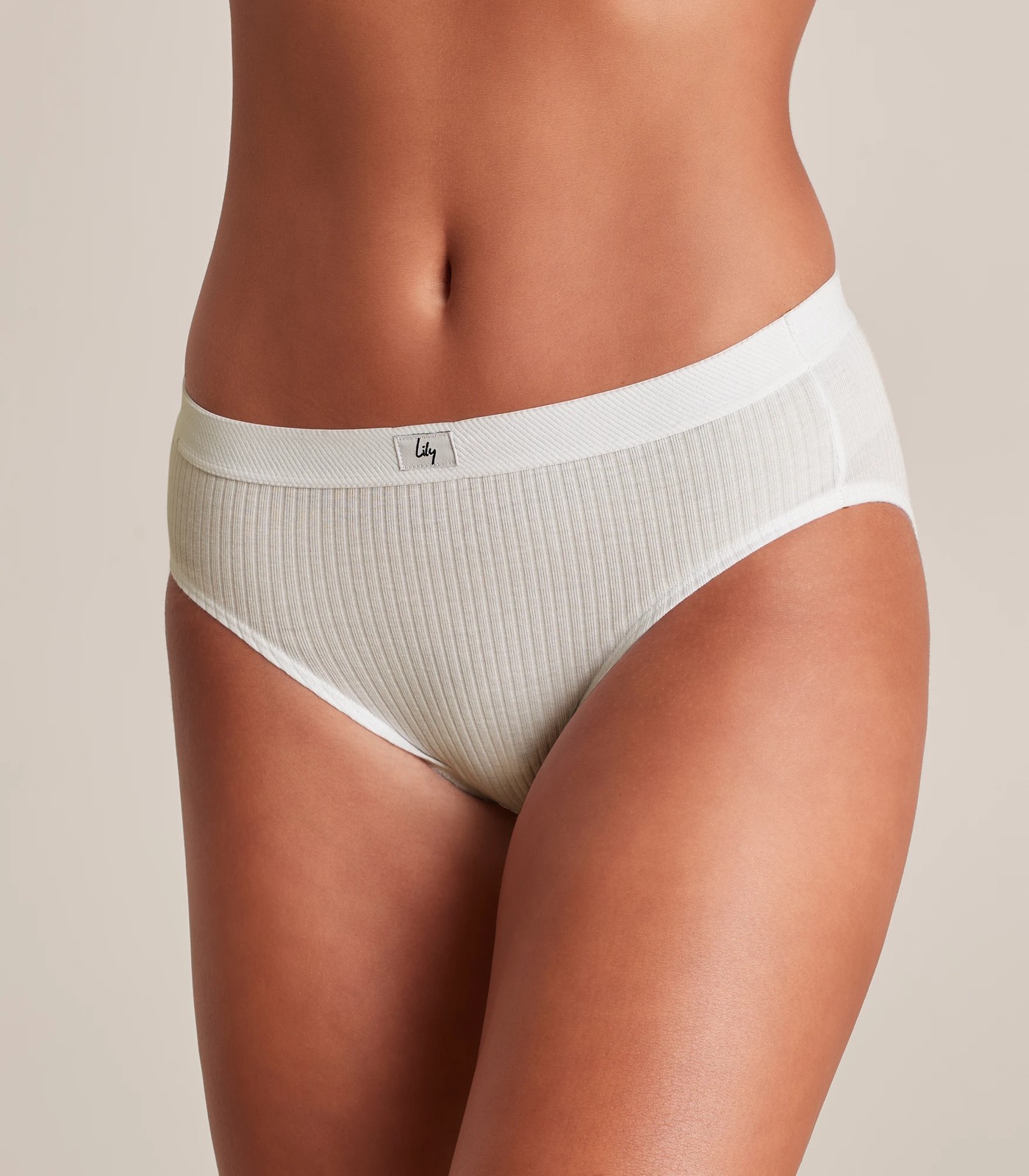The Lily Loves heritage ribbed high waisted bikini briefs are comfy and great for everyday wear. They feature a thick elastic waistband with a Lily applique in the centre, an all over ribbed look and a high cut leg.