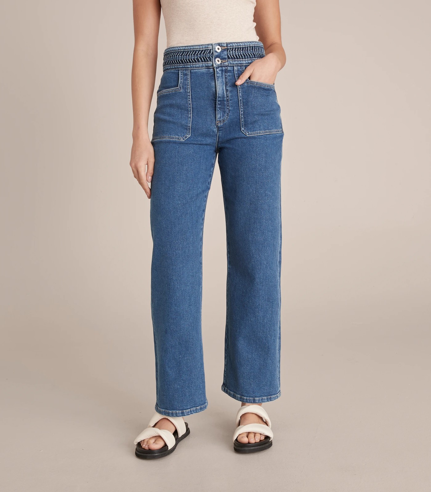 Comfort meets vintage with these high waisted plaited flare jeans from the Lily Loves range! Dress them up or down with simple tweaks to your outfit for any occasion, they feature a high waist with a plaited waistband, a wide leg flared design and are made from an breathable recycled cotton fabrication.