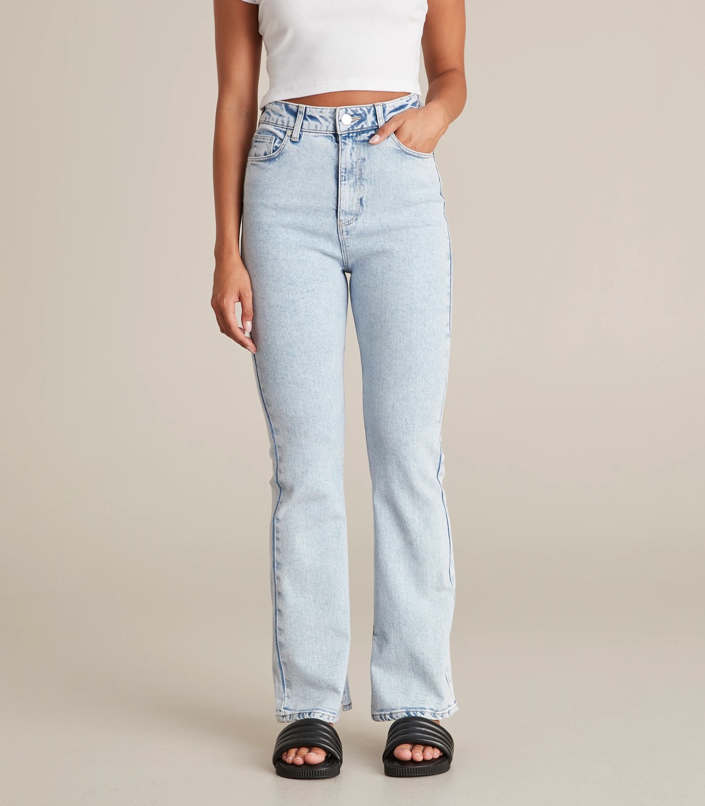 Comfort meets vintage with these high waisted flare jeans from the Lily Loves range! Dress them up or down with simple tweaks to your outfit for any occasion, they feature a high waist, a wide leg flared design with a distressed hemline and are made from an breathable cotton fabrication.