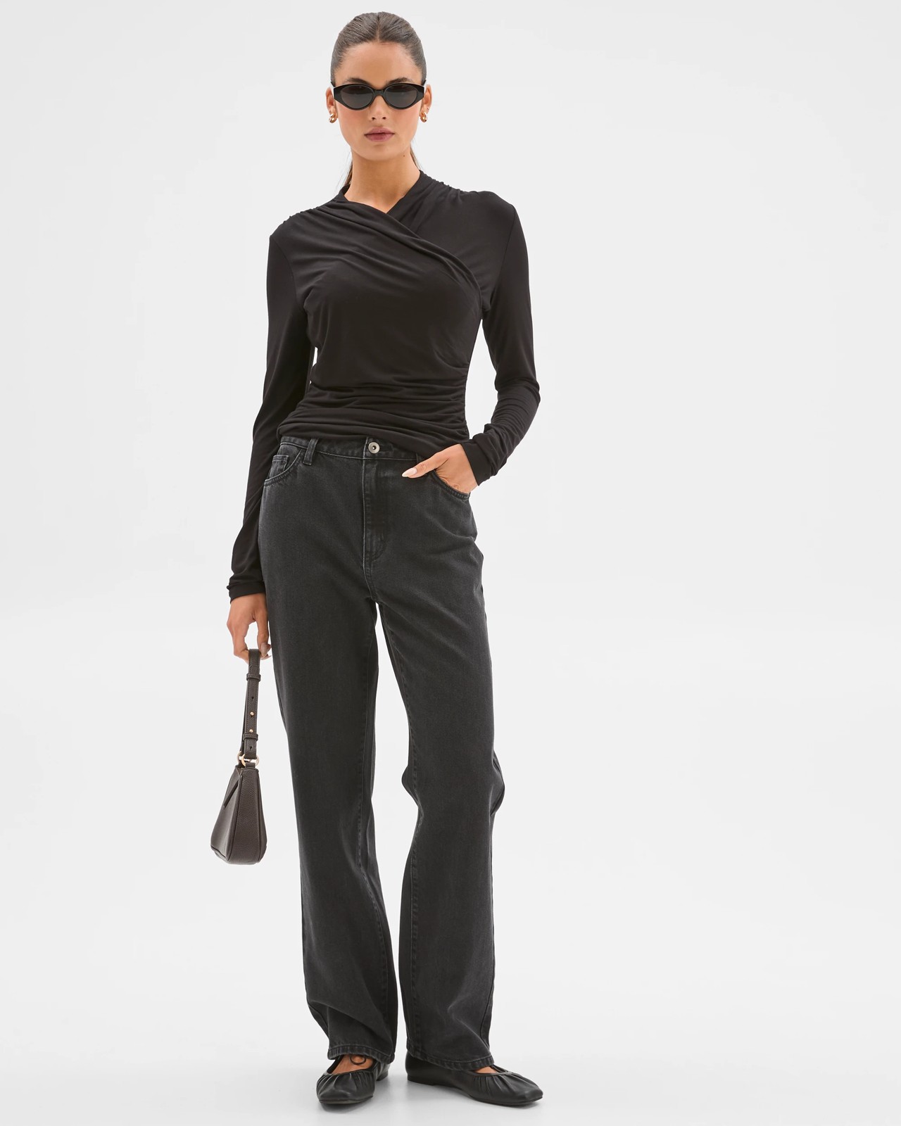 Lily Loves Long Sleeve Crossover Drape Top - Black