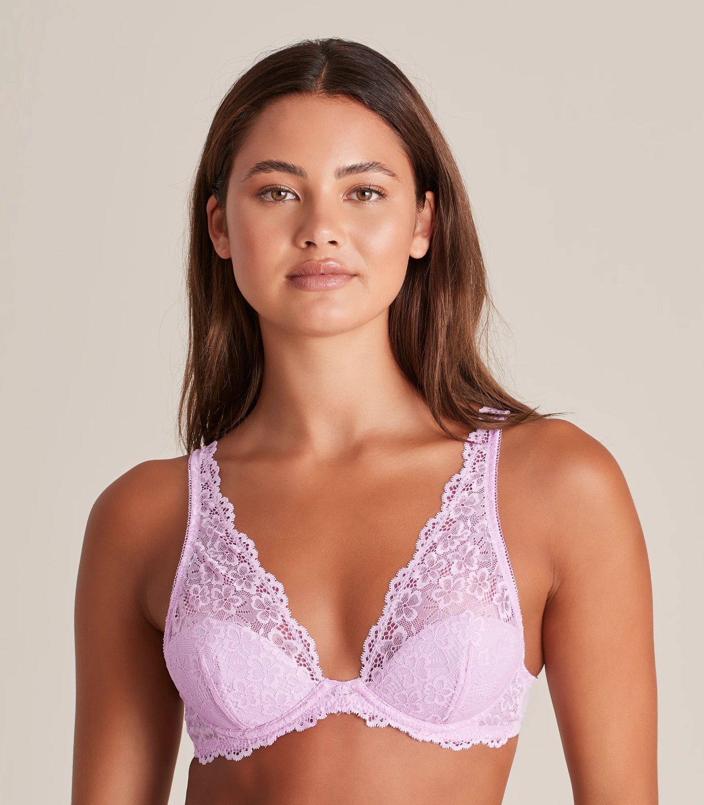 The Lily Loves Lucy lace plunge bra is a comfortable everyday bra. It features a plunge cut front, lace detailing on the front and has a hook and eye closure. Pair with the matching briefs to complete the look (sold separately).