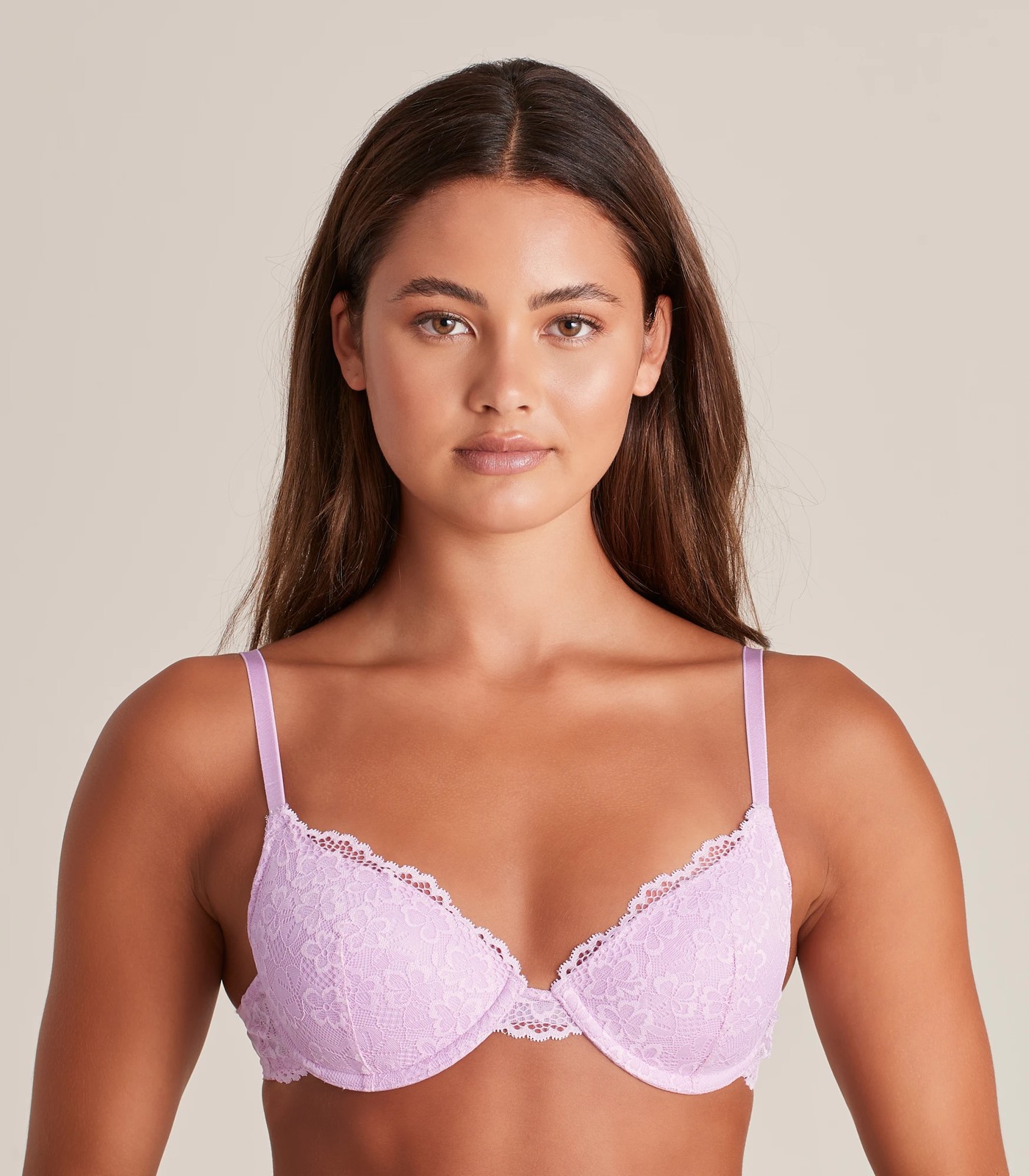 The Lily Loves Lucy lace t-shirt bra is a comfortable everyday bra. It features a plunge cut front, lace detailing on the front and has a hook and eye closure. Pair with the matching briefs to complete the look (sold separately).