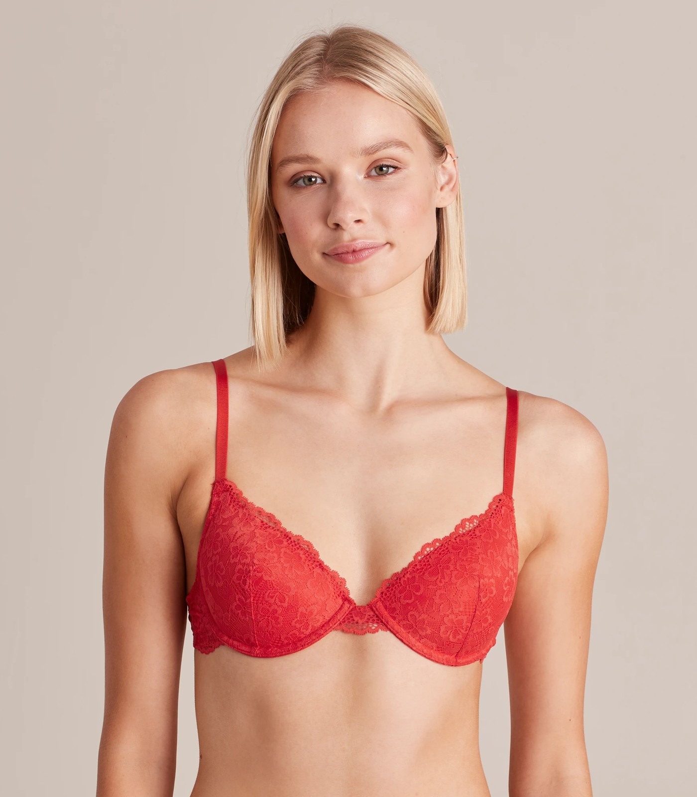 The Lily Loves Lucy lace t-shirt bra is a comfortable everyday bra. It features a plunge cut front, lace detailing on the front and has a hook and eye closure. Pair with the matching briefs to complete the look (sold separately).