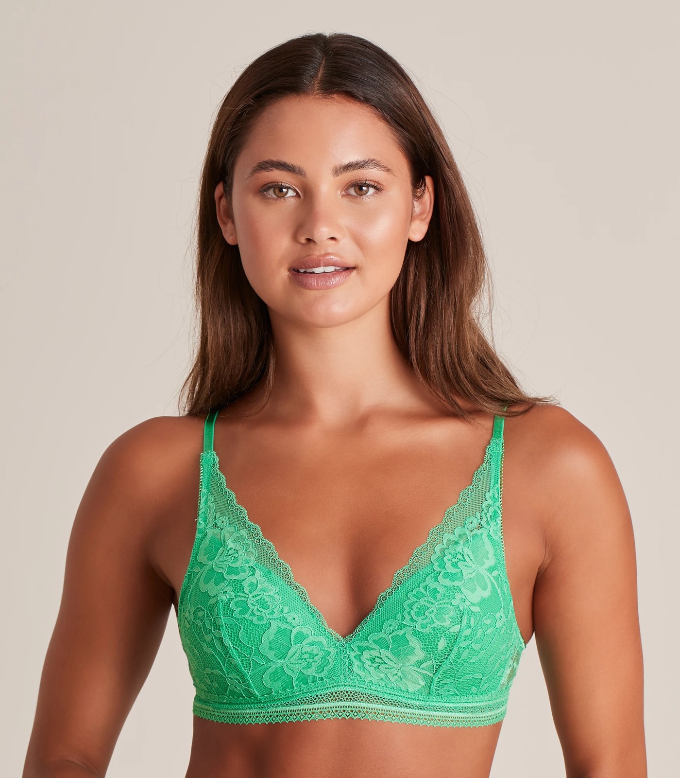 Feel racy and confident in the Lily Loves moulded lace bralette. It features an all over lace fabrication, has stretch for comfort and is wirefree. Pair with the matching briefs to complete the set (sold separately).