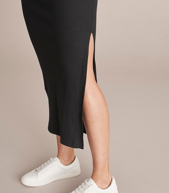 A great everyday staple, the Lily Loves rib racer midi dress features an all over rib design, is sleeveless, has a racer cut and a midi length.