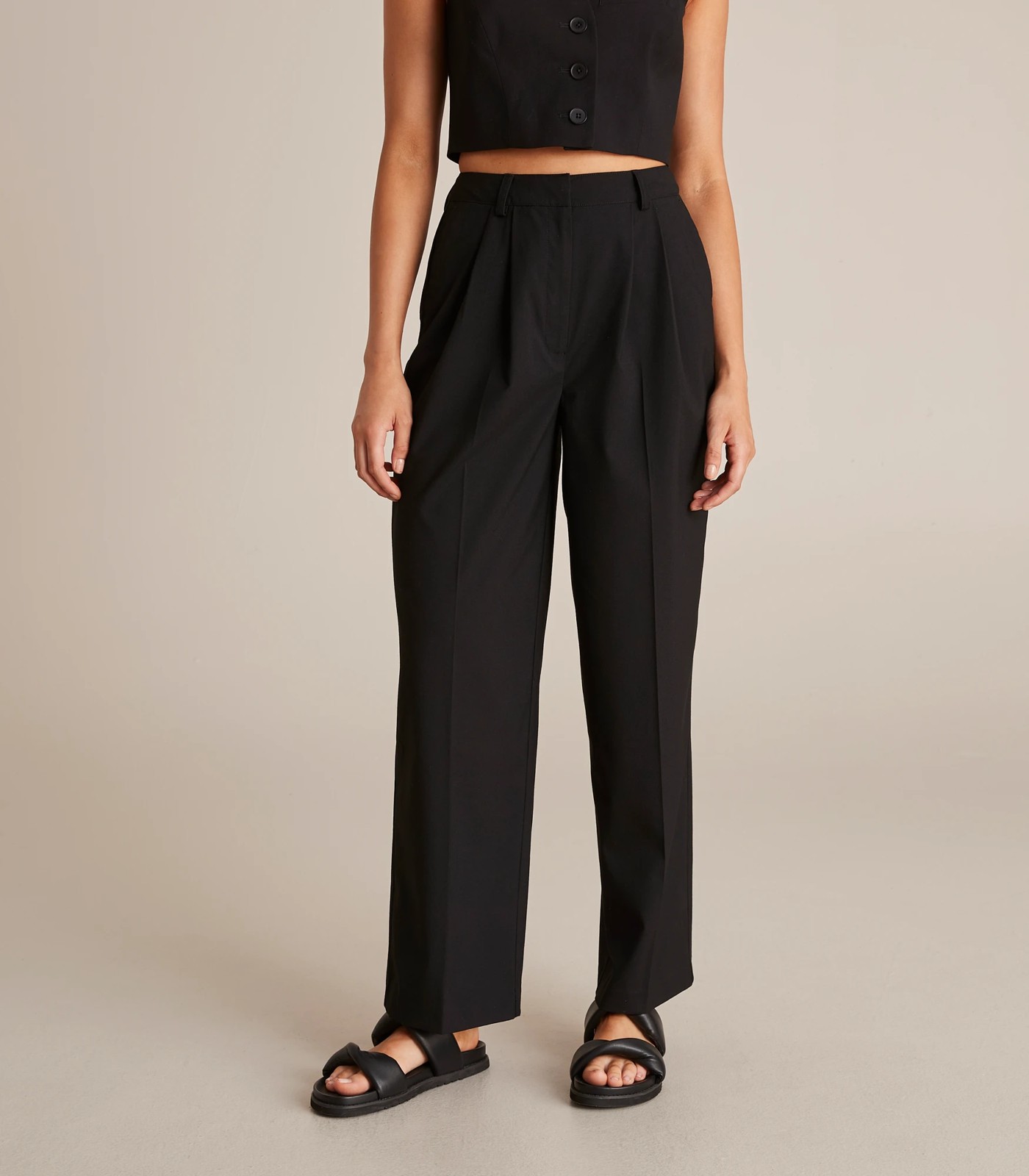 A great pair of pants to take you easily from the office to out on the town, the Lily Loves wide leg trousers have a structured waistband, permanent pleating down the front and a wide leg design.