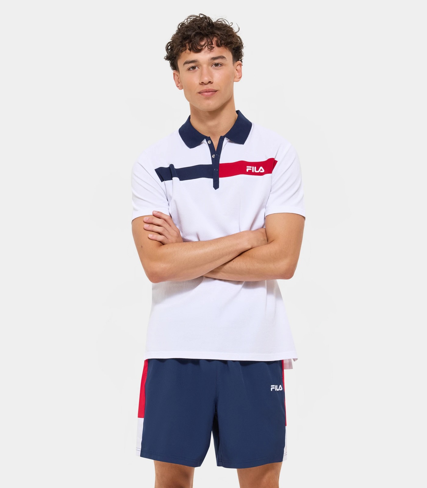 Elevate your style with the Lincoln polo top from Fila. Embrace a smart, fashionable and adaptable look with this Men's Cotton Pique polo. Featuring a small Fila embroidery on the left chest, contrast splicing to the chest and a jacquard rib collar. Our polo features side splits and a contrast placket with the classic button-up neckline you adore. Infuse freshness into your wardrobe and enjoy the timeless appeal of this versatile polo. Whether you're out for a casual lunch or attending a special event, this polo will keep you looking effortlessly sophisticated. Pair the Lincoln polo with the Lincoln sports short (sold separately) for a comfy and coordinated look.