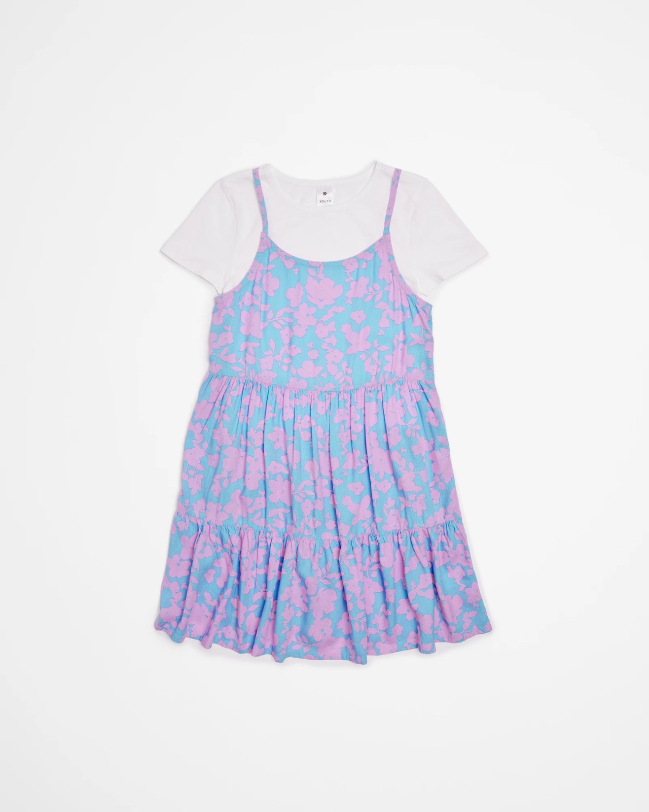 Look stylish and chic with this 2 Piece Linen Blend Dress Set. This set includes a lightweight linen-blend dress with a regular fit and adjustable spaghetti straps. The floral print dress features a gathered waistband and tiered hem while the basic cotton t-shirt is included to complete the look. Be it casual hangouts or semi-formal occasions, this dress set is sure to make heads turn!