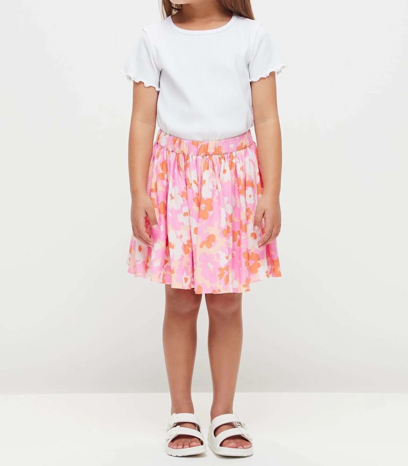 Discover the perfect piece for summer days with this Linen Blend Floral Skirt. Crafted from lightweight linen blend fabric, this skirt features a regular fit and a vibrant orange floral print throughout. An elastic waistband provides a comfortable fit and is finished with a short length and unlined design, making it an ideal choice for girls of all ages.