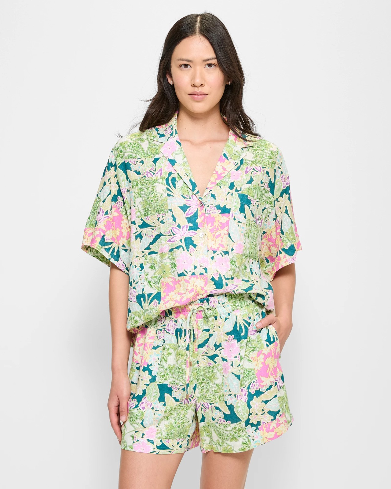 Step into effortless style with our Linen Blend Resort Shorts. Designed for women, these shorts are made from a viscose and linen blend, providing a light and airy feel. Featuring a regular fit with a charming garden tile pattern, they are perfect for any casual outing. The elastic waistband with a drawstring ensures comfort, while the side pockets add convenience. Perfect for sunny days, these shorts offer both versatility and comfort. Make them your go-to choice for relaxed days out!