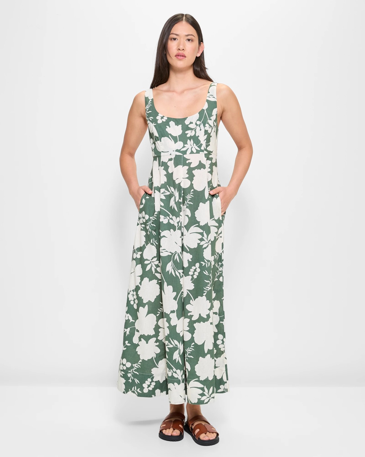 Discover the charm of our Linen Blend Scoop Neckline Maxi Dress. This lightweight and breathable piece is perfect for warm days, combining comfort with style. Tailored in a regular fit, it boasts a scoop neckline and thick shoulder straps for a classic look. The structured underbust adds a touch of sophistication, while the side seam pockets offer practicality. The top centre back shirred elastic panel ensures easy wear, and its maxi length with a straight hemline completes the design. It's a versatile addition to your wardrobe that you'll love to wear.