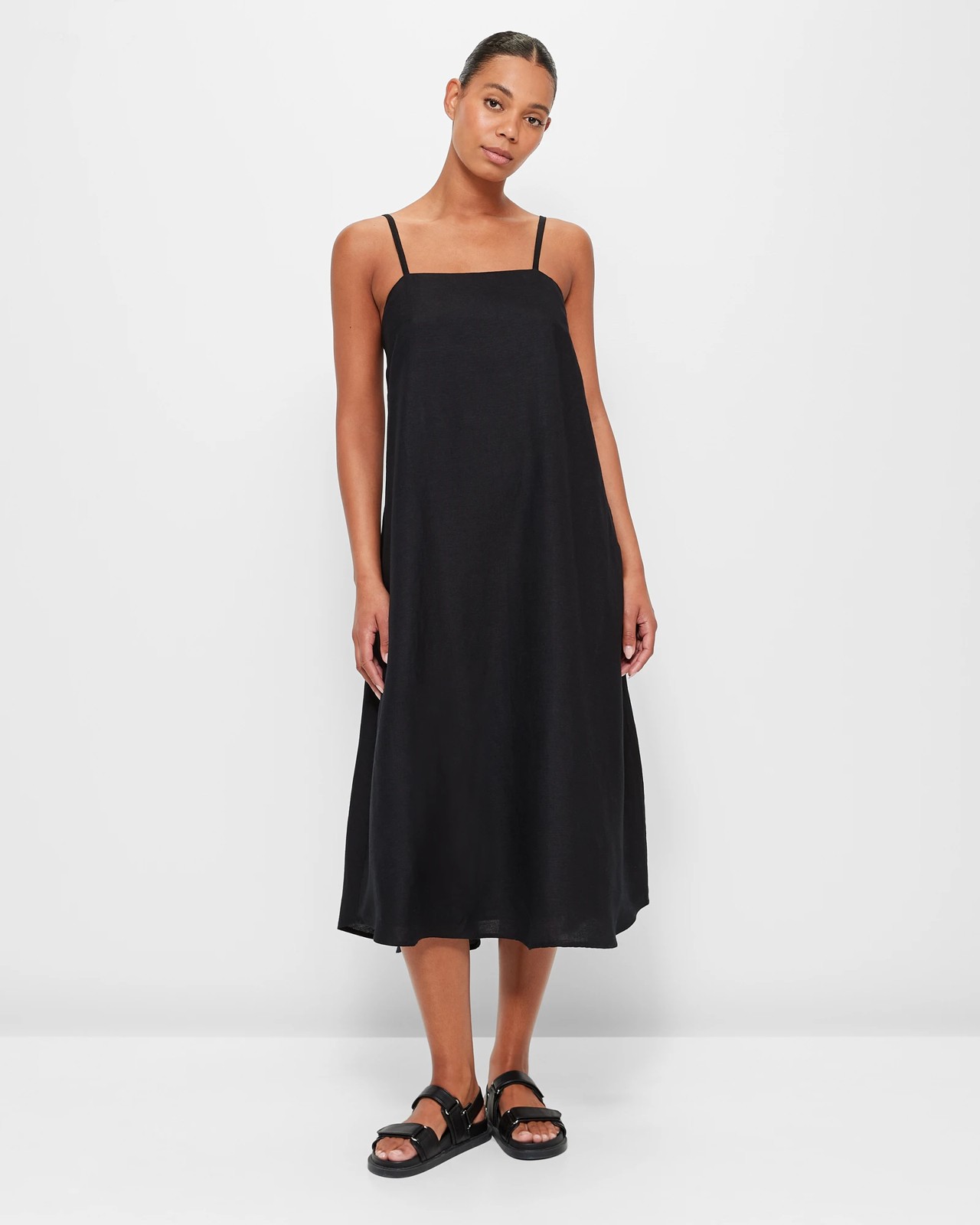 Elevate your summer wardrobe with this Linen Blend Strappy Midi Dress. Made from a luxurious linen and viscose blend, this dress is both comfortable and stylish. The dress features a sweetheart neckline and thin adjustable shoulder straps, giving it a feminine and elegant look. The darting at the chest creates a flattering silhouette, while the side seam pockets add a functional touch. Perfect for any occasion, this dress can be worn from day to night. Pair it with sandals for a casual daytime look or dress it up with heels for a night out. Add this versatile and chic dress to your collection today!