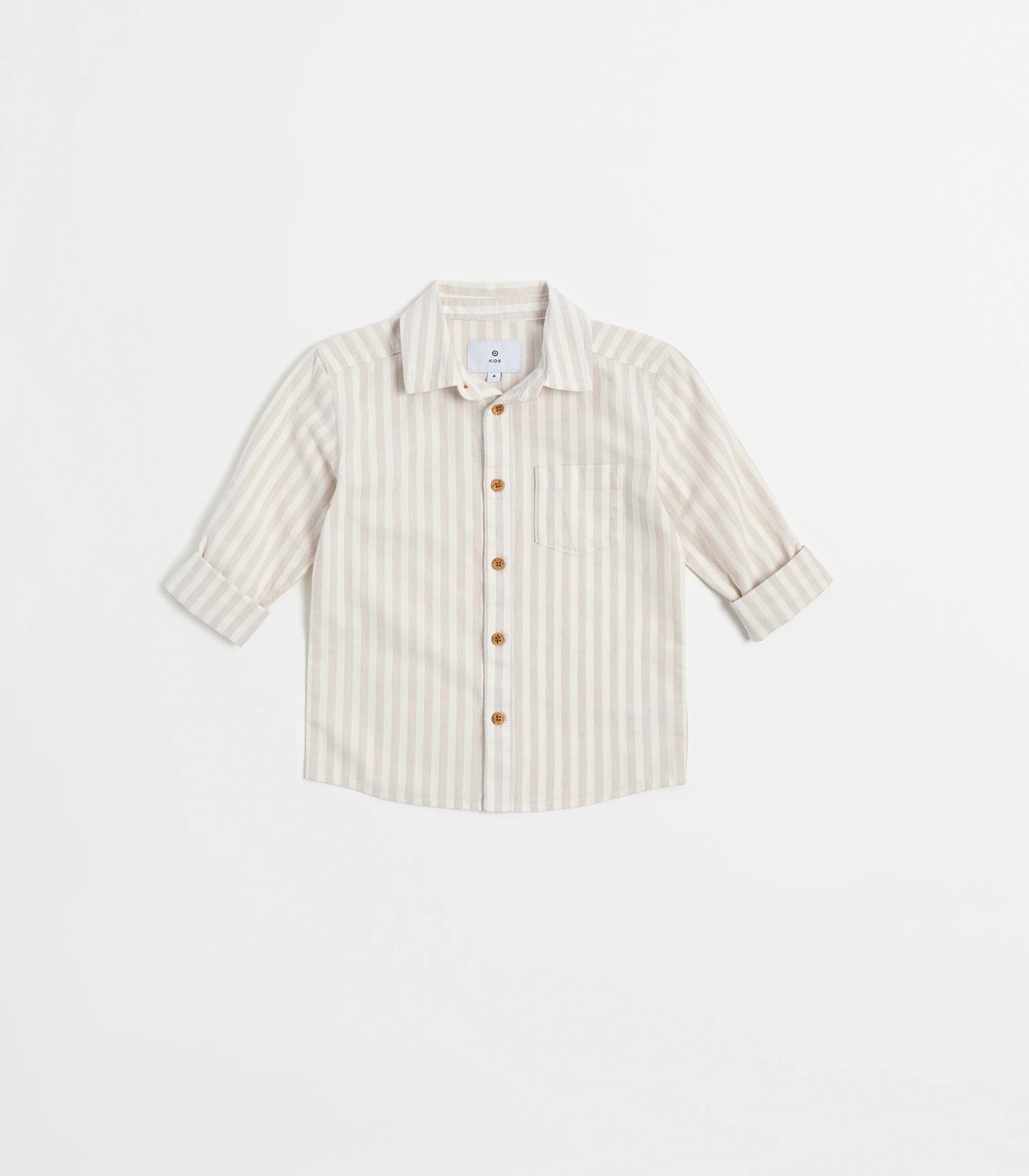 Wrap your little one in classic style with our Linen Blend Striped Shirt. Crafted from a comfortable cotton linen blend, the shirt features a timeless striped design and a smart collared neckline. Perfect for formal occasions or casual outings, the button-up front and long sleeves with buttoned cuffs add a touch of refinement. Complete with a single chest pocket and a gently curved hem, make sure your young gent is looking sharp. Get him the best-dressed award with our Linen Blend Striped Shirt!
