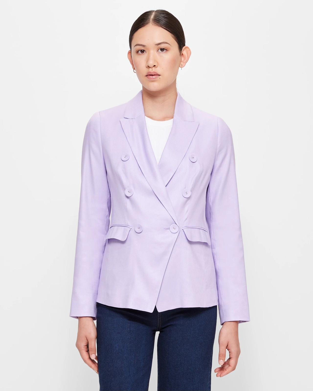 Get a sneak peek with the Linen Blend Tailored Blazer from Preview. Made from a luxurious linen and viscose blend, this blazer offers a comfortable stretch and a tailored fit for a smart look. The round collared neckline with front lapels and a v-front drop adds a touch of elegance. With shoulder pads and long sleeves adorned with decorative gold buttons, this double-breasted blazer is both stylish and sophisticated. It also features decorative buttons on the front, front fold-over top pockets, and tailored panels throughout. Complete your outfit with this blazer and make a statement. Shop now!