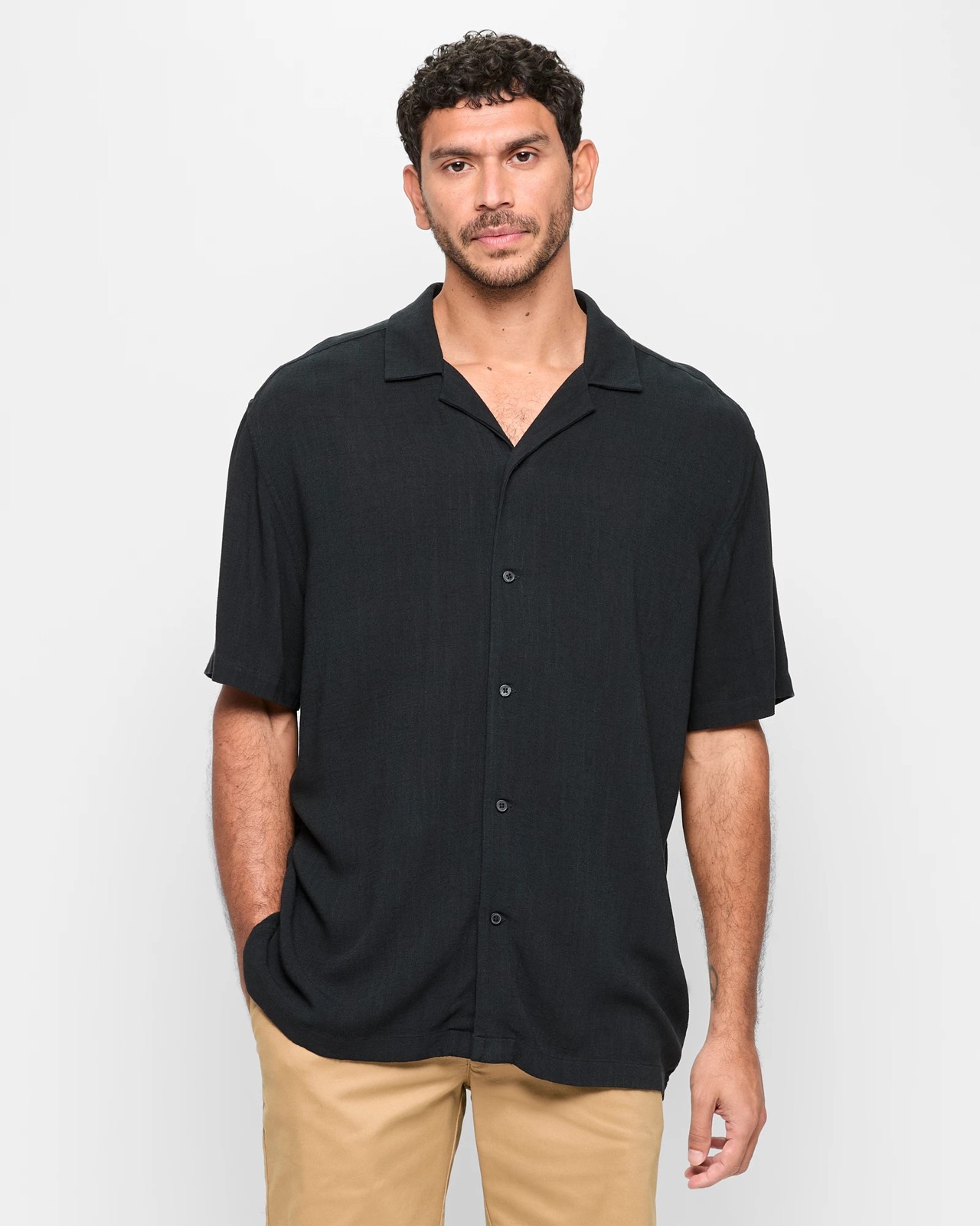 Experience a stylish upgrade with our Linen Blend Textured Revere Shirt. Made from a viscose and linen blend, this shirt is light and soft against the skin. It showcases a unique textured design, regular fit, and a round collared neckline with small front lapels. The button-through front and short sleeves add to its casual appeal. The straight hemline and back centre pleat ensure added movement and comfort. Perfect for any occasion, this shirt promises effortless style and versatility.