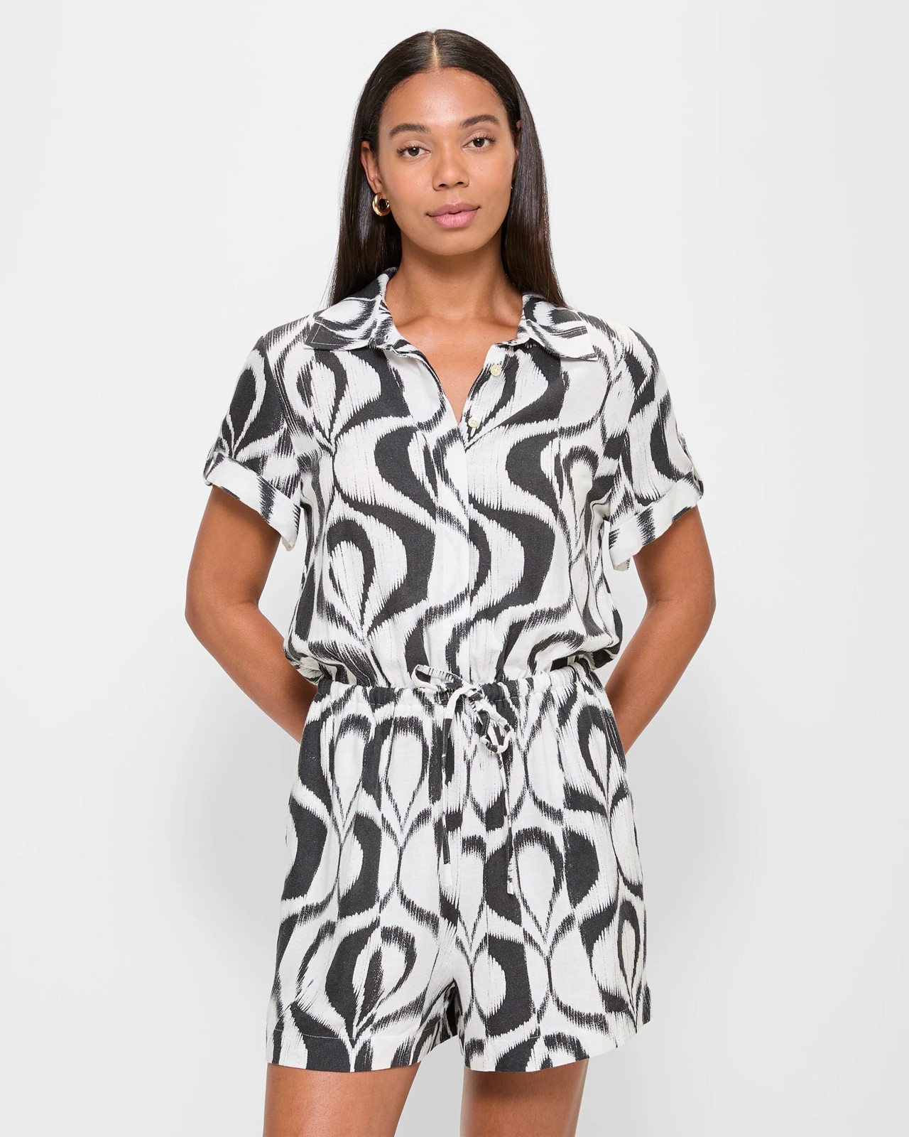 Step into effortless style with our Linen Blend Tie Waist Playsuit. Designed for both comfort and chic appeal, this playsuit features a soft viscose and linen mix that's perfect for warm days. You'll love the easy pull-on design with a round neckline and hidden buttons. The adjustable waist tie and short roll cuff sleeves add a trendy touch, while the side pockets offer practicality. Feel confident and ready for any casual outing. Slip it on and head out with ease.