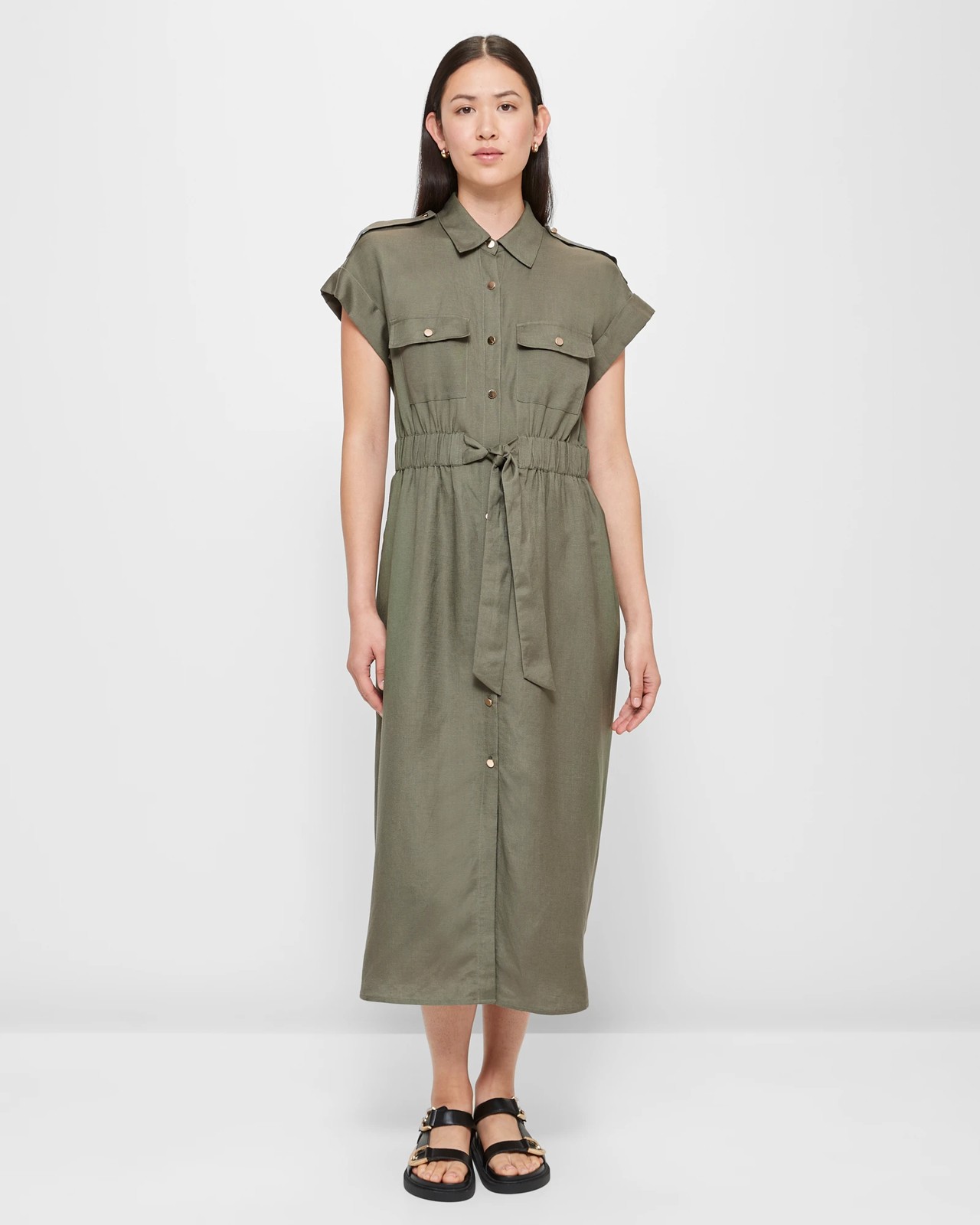 Experience the versatility and comfort with our Utility Shirt Dress from Preview. Crafted from a luxurious blend of linen and viscose, the dress offers a lightweight and airy feel perfect for any occasion. Designed with a relaxed fit, utility straps, and functional pockets, its practicality is matched only by its elegance. Elevate your wardrobe with the added convenience of a button-through front and elastic waistband. Step into effortless style with our Maxi length dress and make every day a fashion statement.