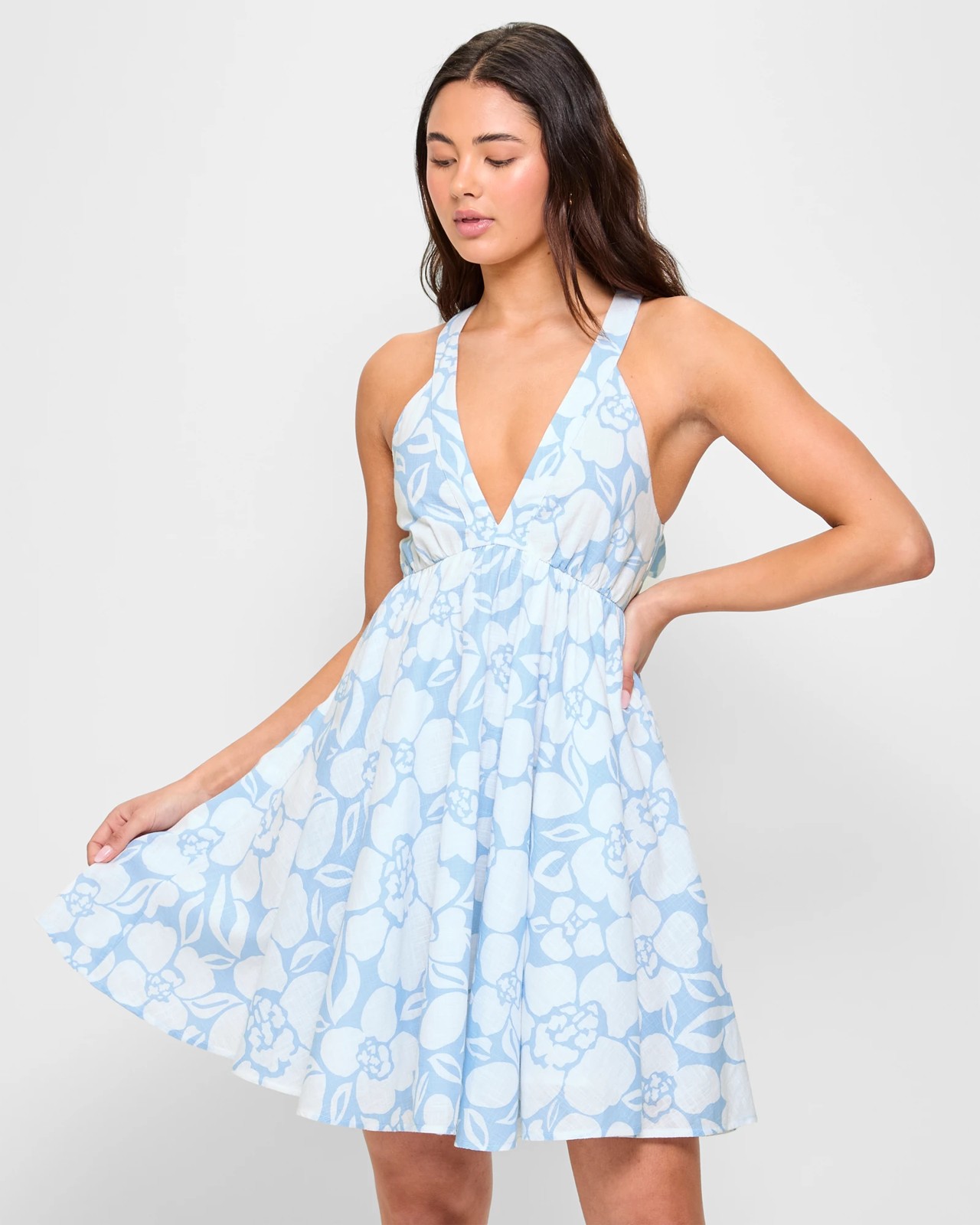 Linen Blend V-Neck Tie Back Mini Dress - Lily Loves