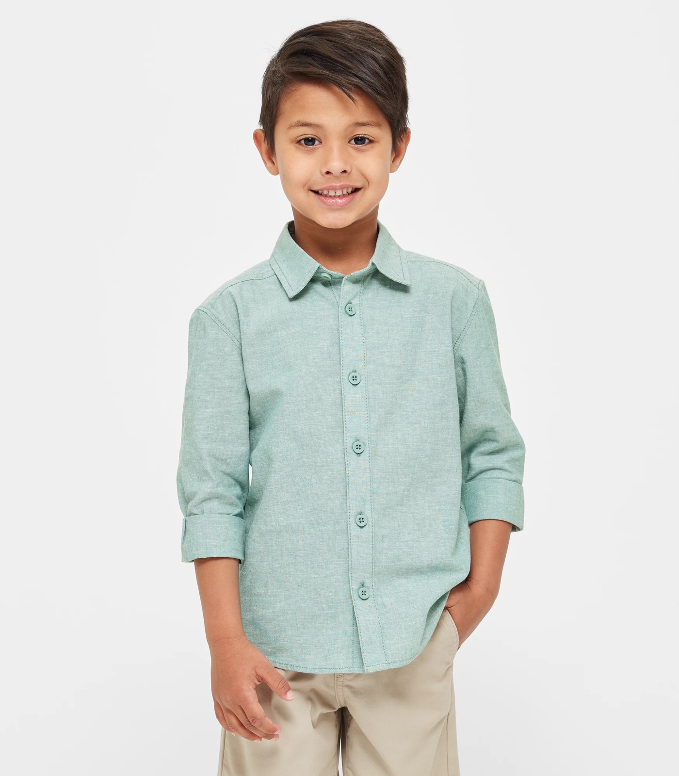Introducing our Linen Blend Long Sleeve Shirt for boys, a perfect addition to their wardrobe. Crafted from a high-quality cotton linen blend, this shirt offers both style and comfort. The regular fit ensures a relaxed look, while the collared neckline adds a touch of sophistication. With its button-up front and long sleeves with buttoned cuffs, this shirt can be easily adjusted according to the weather. The curved hem adds a trendy twist to the classic design. Whether it's a casual outing or a special occasion, this shirt is versatile and will make your little one look smart and stylish.