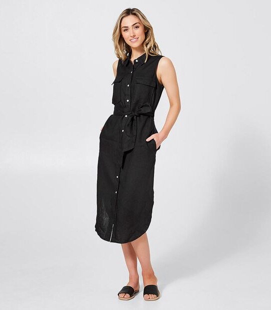 Keep it casual but classy in the black linen shirt dress from our everyday range. Great for a day out, whether it be for brunch, shopping or at the beach.